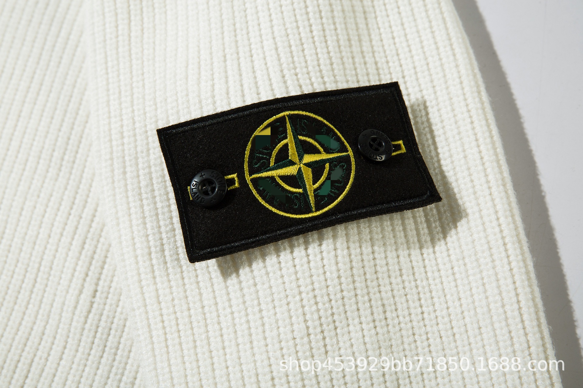 국경 간 유럽과 미국 STONE 스톤 지퍼 오픈 가슴 스탠드 칼라 배지 기능성 니트 스웨터 가을, 겨울 남성과 여성 ius