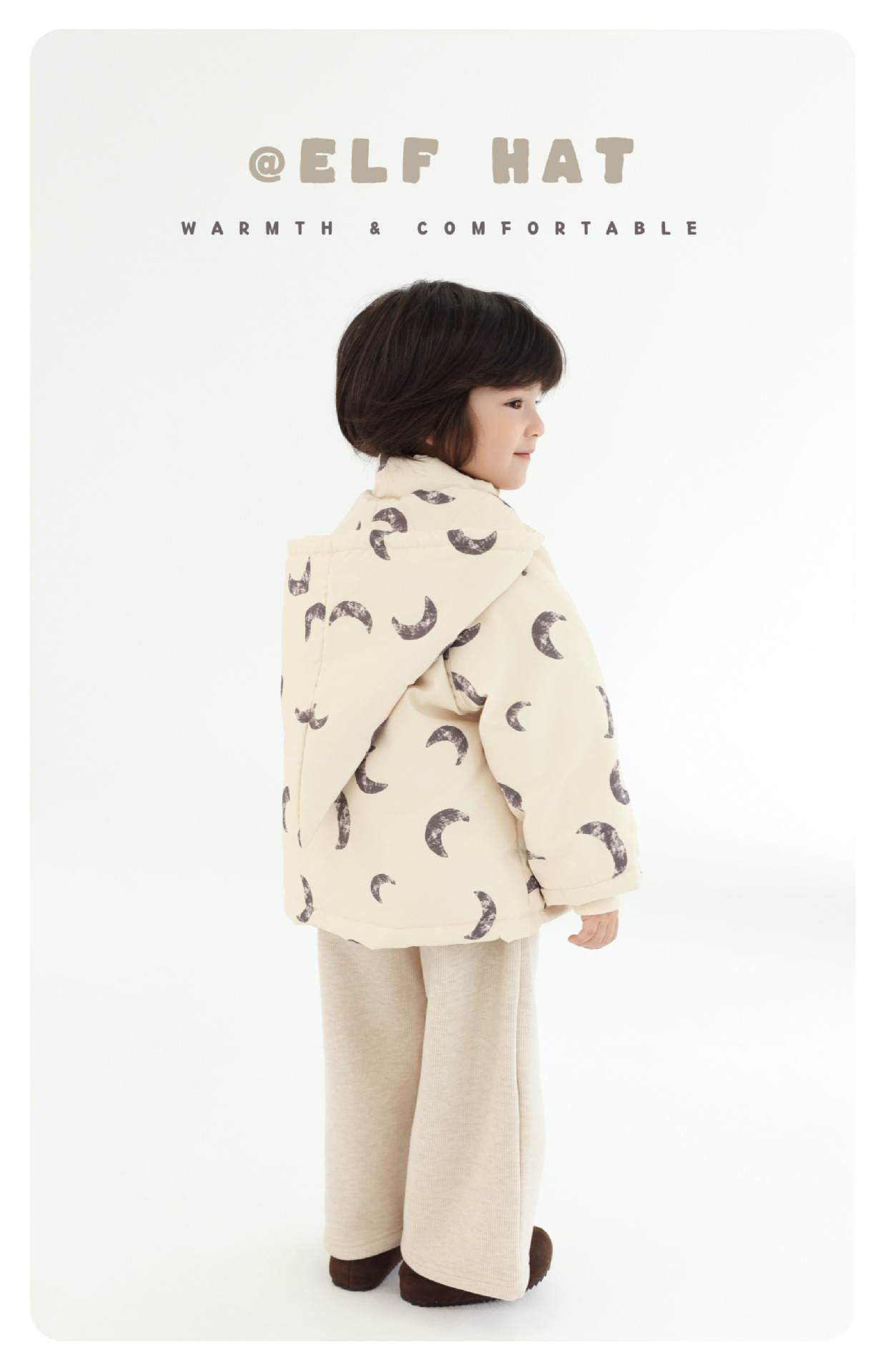 25 겨울 신상품 어린이 벨벳 실크 코트 북유럽 스타일 아동복 귀여운 마법 엘프 모자 어린이 방한 코트