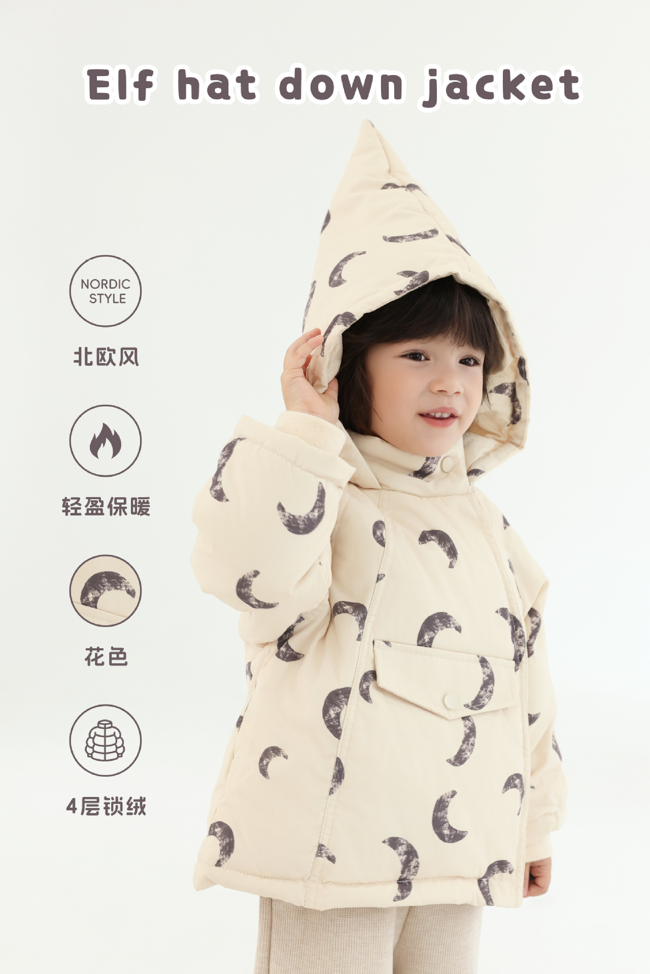 25 겨울 신상품 어린이 벨벳 실크 코트 북유럽 스타일 아동복 귀여운 마법 엘프 모자 어린이 방한 코트스토어 가기