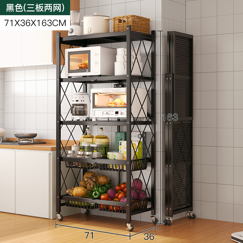 • [메시바구니 모델 - 접이식, 설치 불필요] 블랙 5단, 길이 70CM