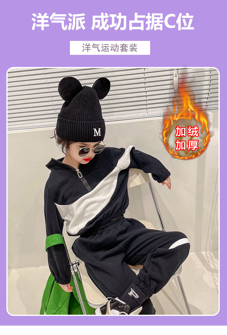 소녀 세트 가을 2024 새로운 패션 아동복 소녀 스포츠 옷 봄과 가을 어린이 기모 투피스 가을과 겨울스토어 가기