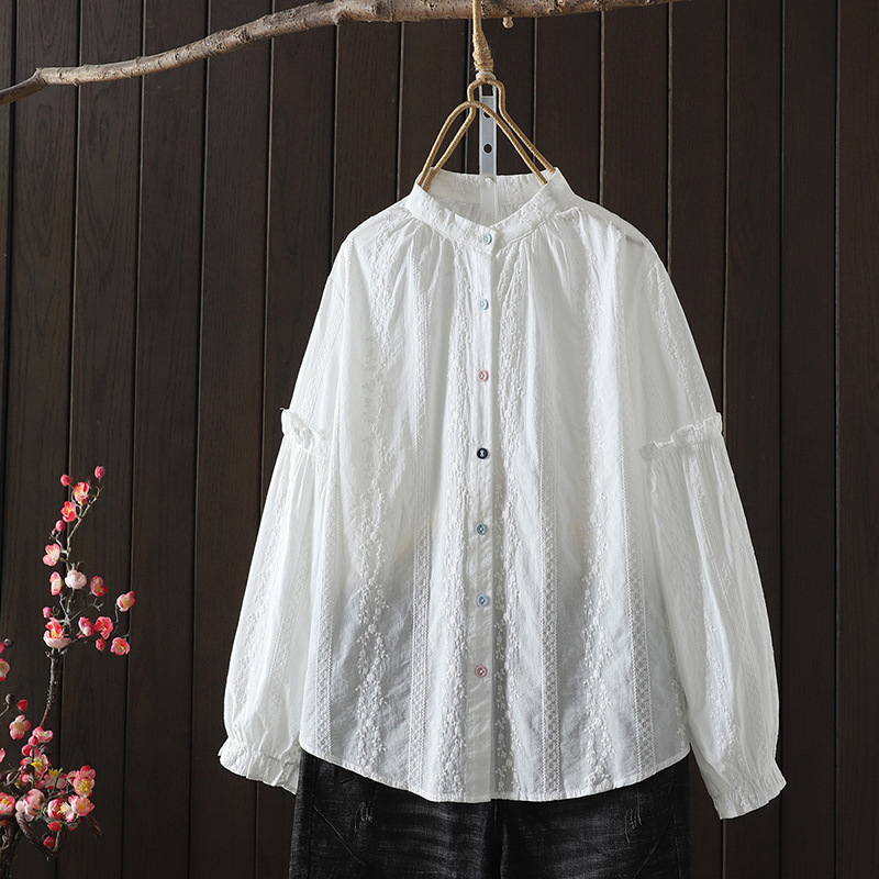 가을 새로운 무거운 자수 둥근 목 숙녀 카디건 셔츠 긴 소매 최고 도매 조수스토어 가기