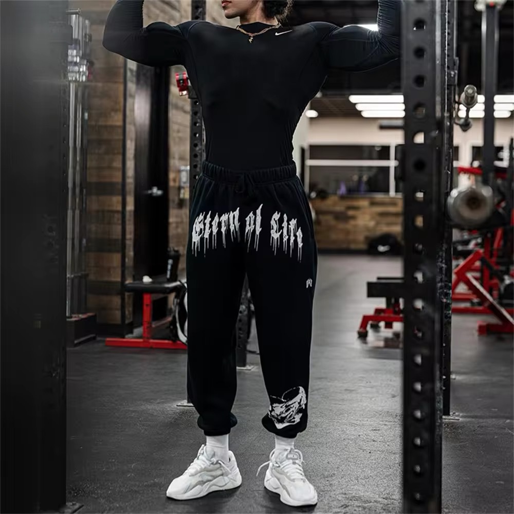 아메리칸 스타일 스웨트 팬츠 남녀 스트레이트 봄과 가을 스포츠 캐주얼 스트리트 헤드 라인 드로우 스트링 트레이닝 팬츠 루즈 올 매치 바지