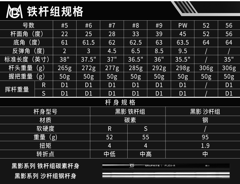 搭配52度和56度的2只沙杆,配备更完备,一套杆解决各种场地需求。 | ||||
