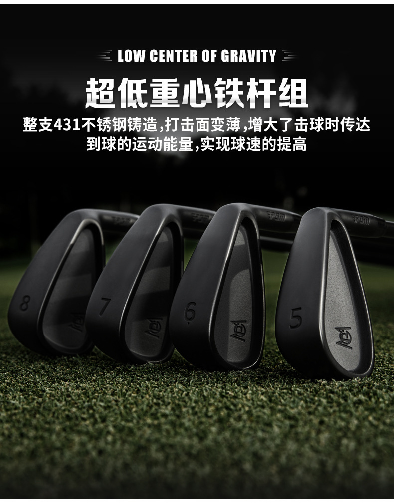 超低重心铁杆组,整支431不锈钢铸造,打击面变薄,增大了击球时球的运动能量,实现球速的提高 |