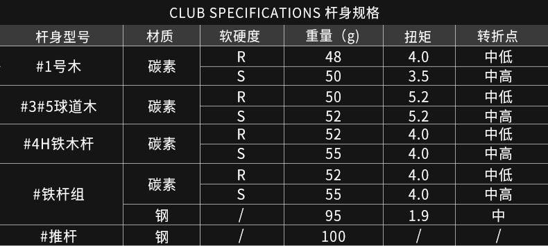 杆头材质 | #1木杆头(钛合金);#3#5和铁木杆(不锈钢);铁杆头(431不锈钢);推杆头(431不锈钢) | |||
