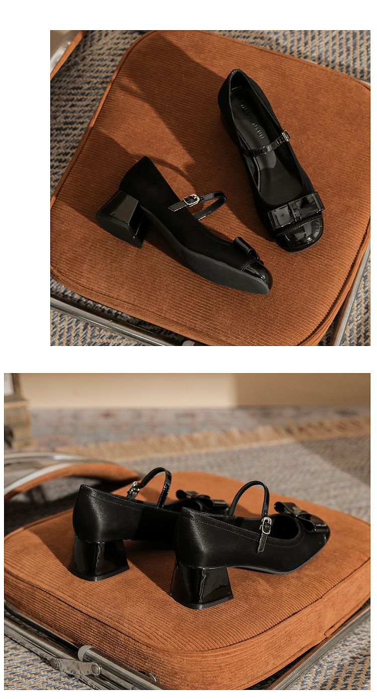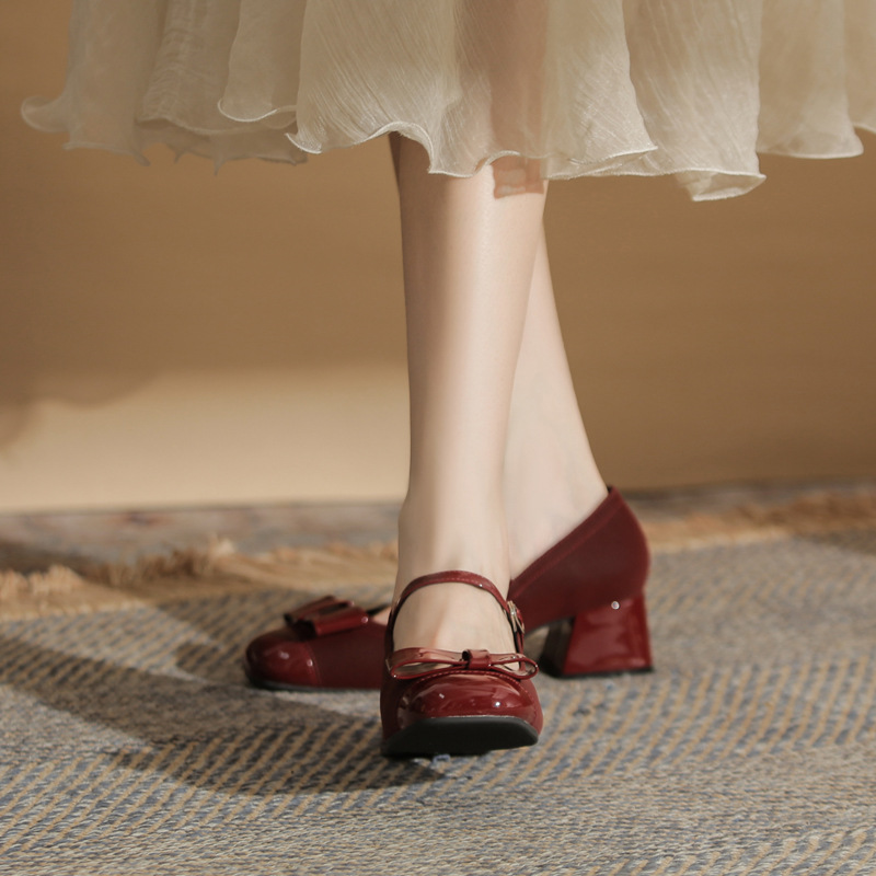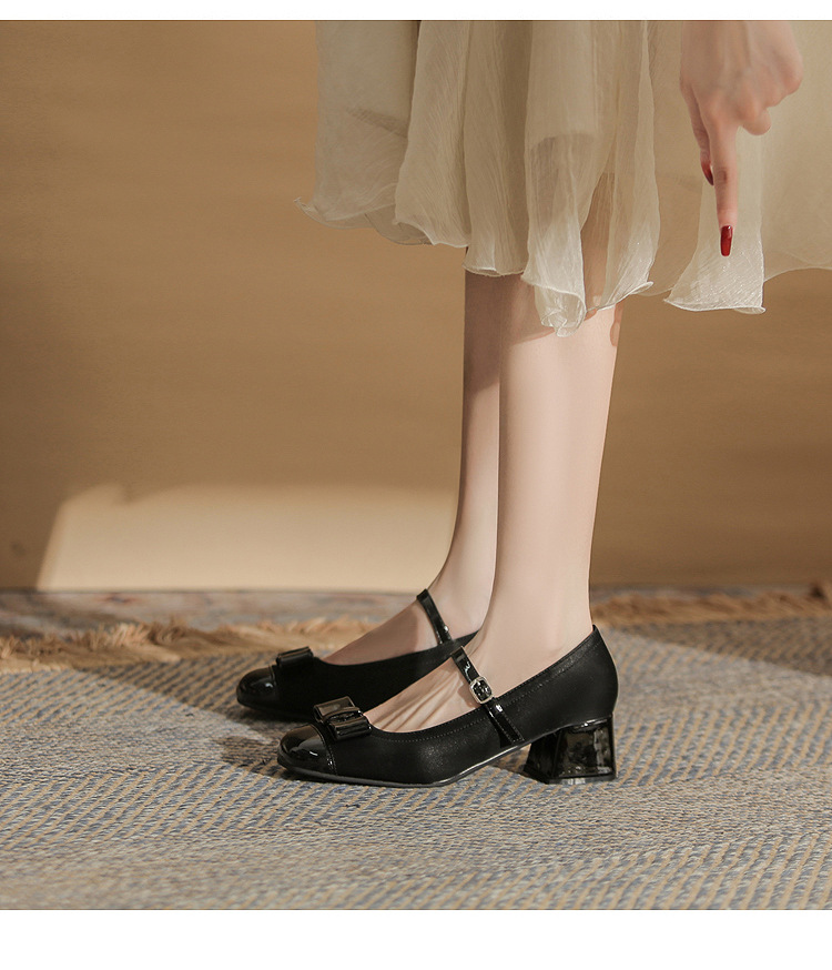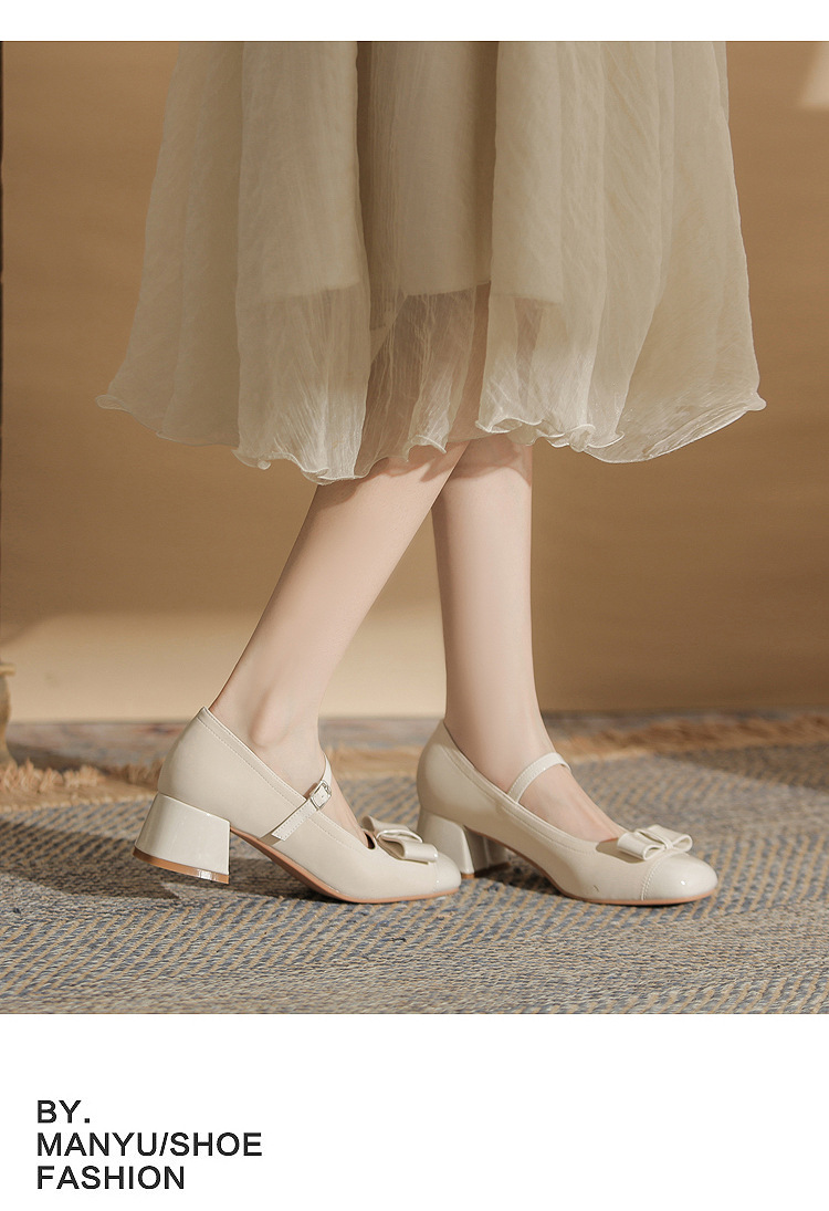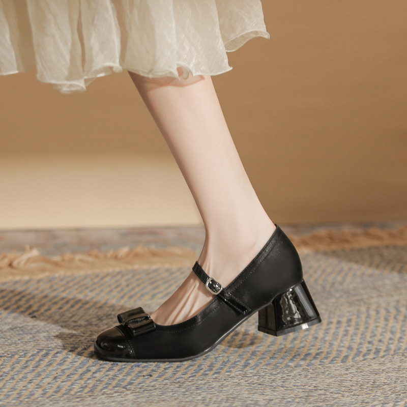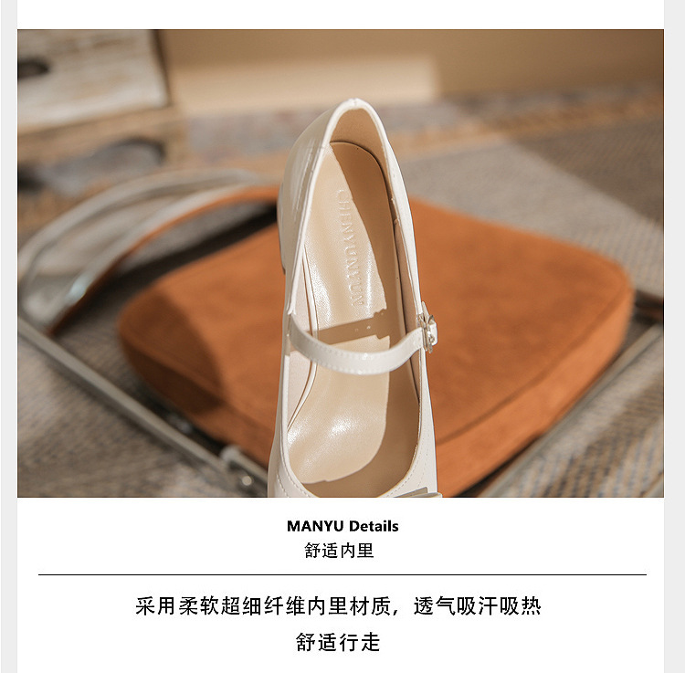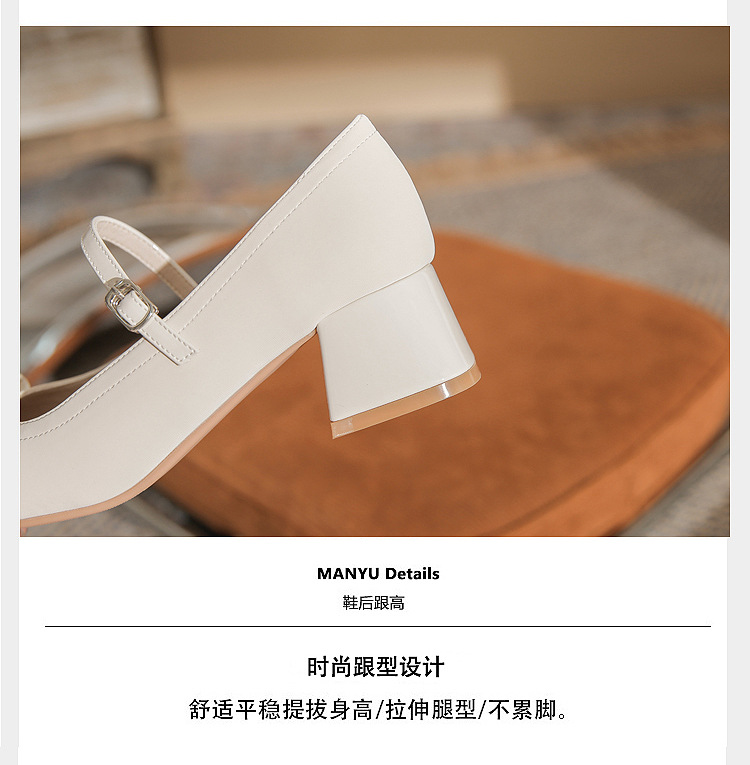 Jin Gang MY4515 청키 힐 메리 제인 여성 신발 2024 새로운 봄 가을 가죽 신발 하이힐 얕은 입 싱글 신발스토어 가기