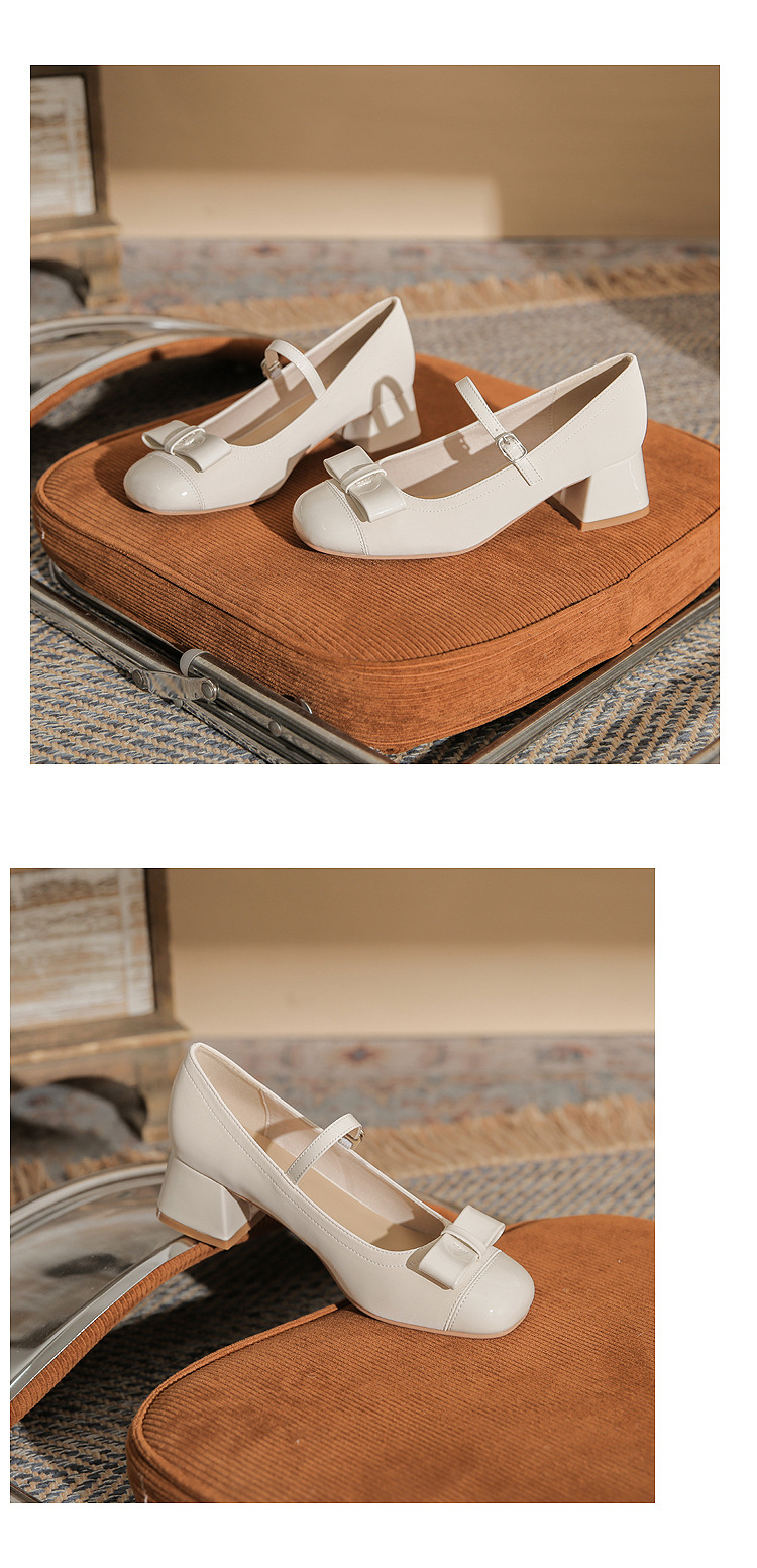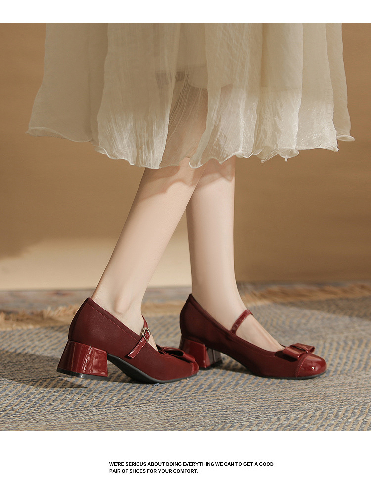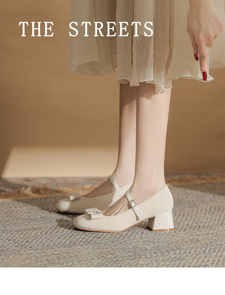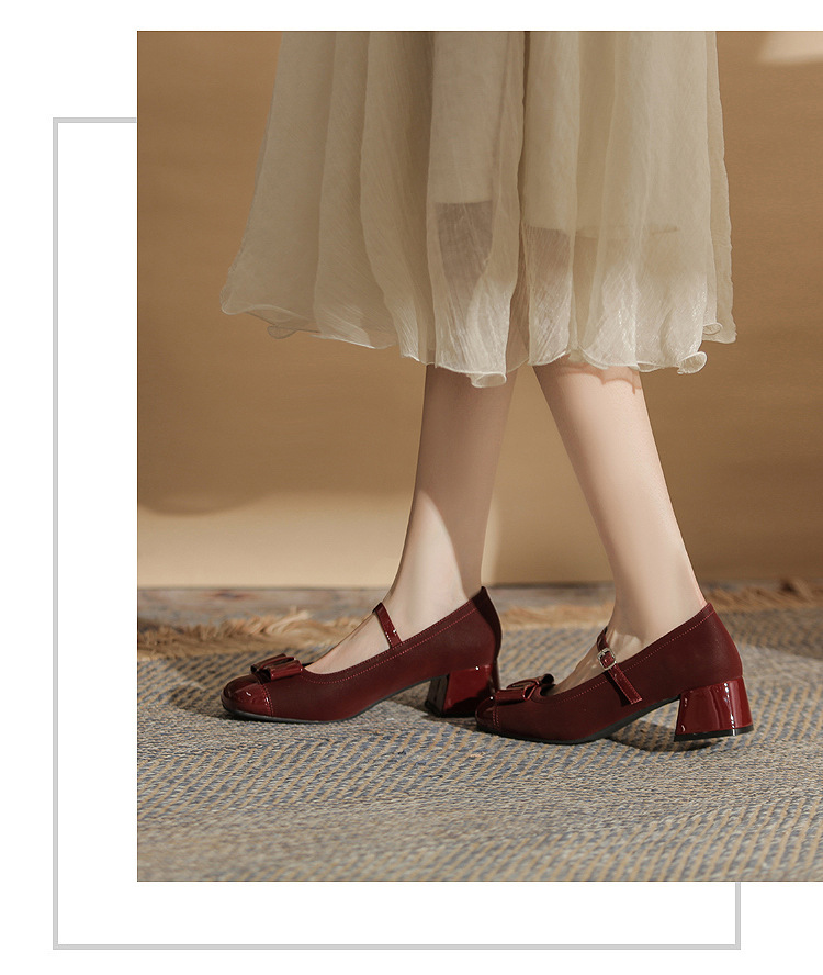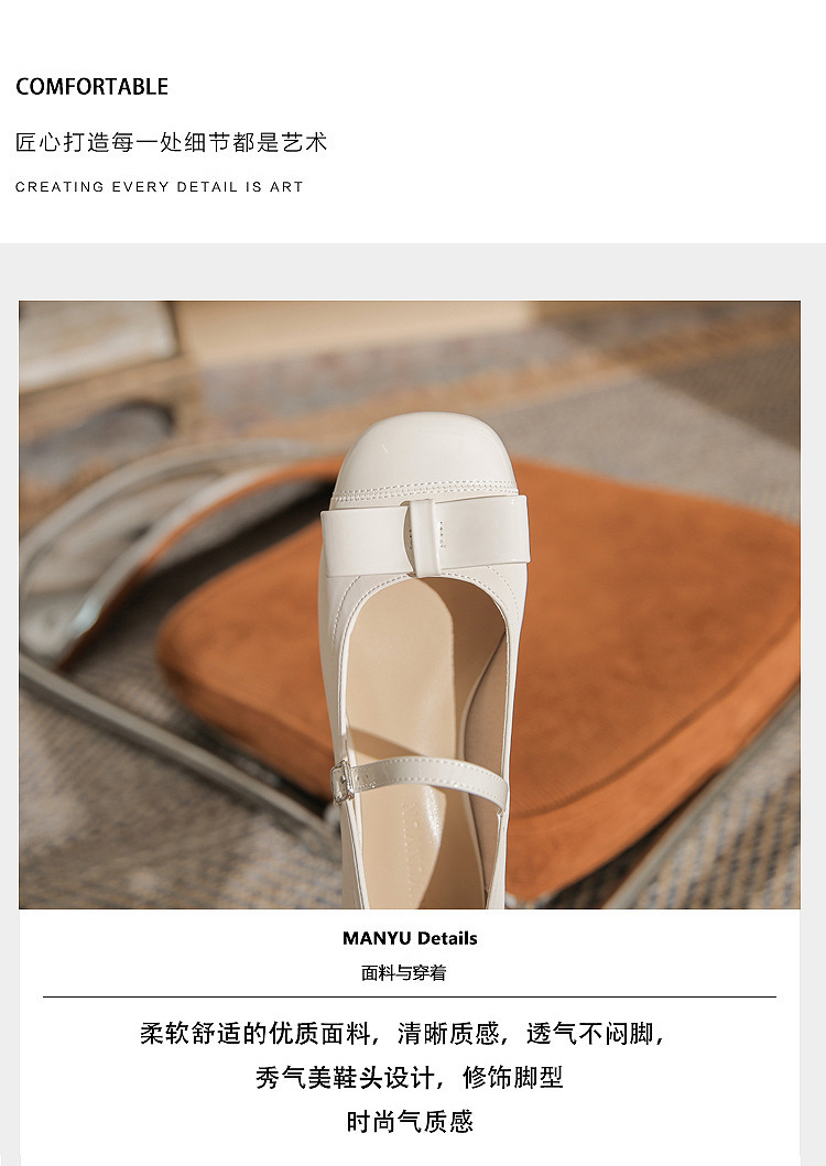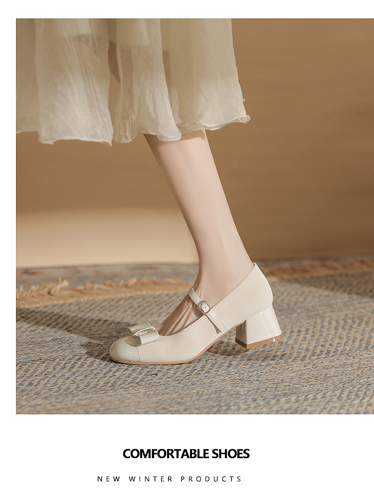 Jin Gang MY4515 청키 힐 메리 제인 여성 신발 2024 새로운 봄 가을 가죽 신발 하이힐 얕은 입 싱글 신발스토어 가기