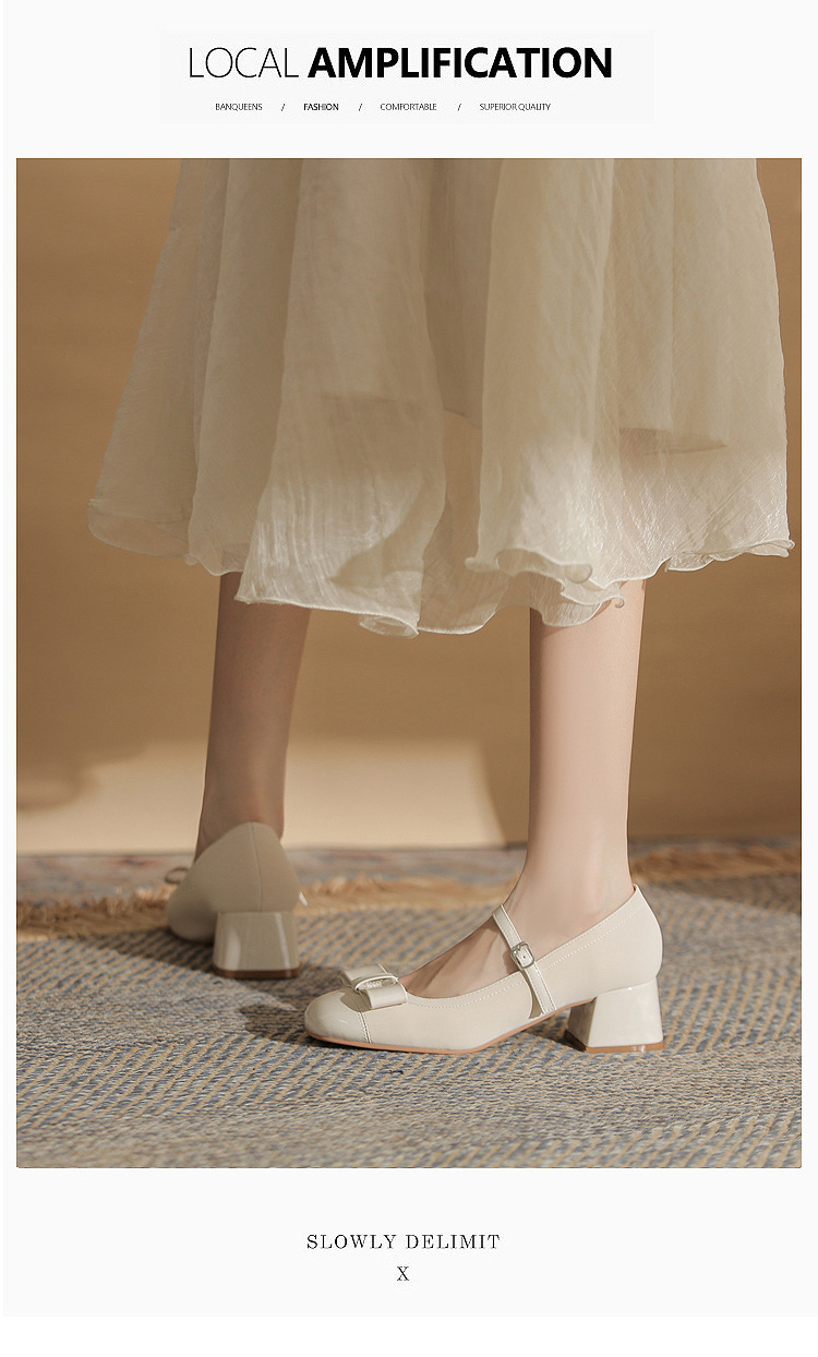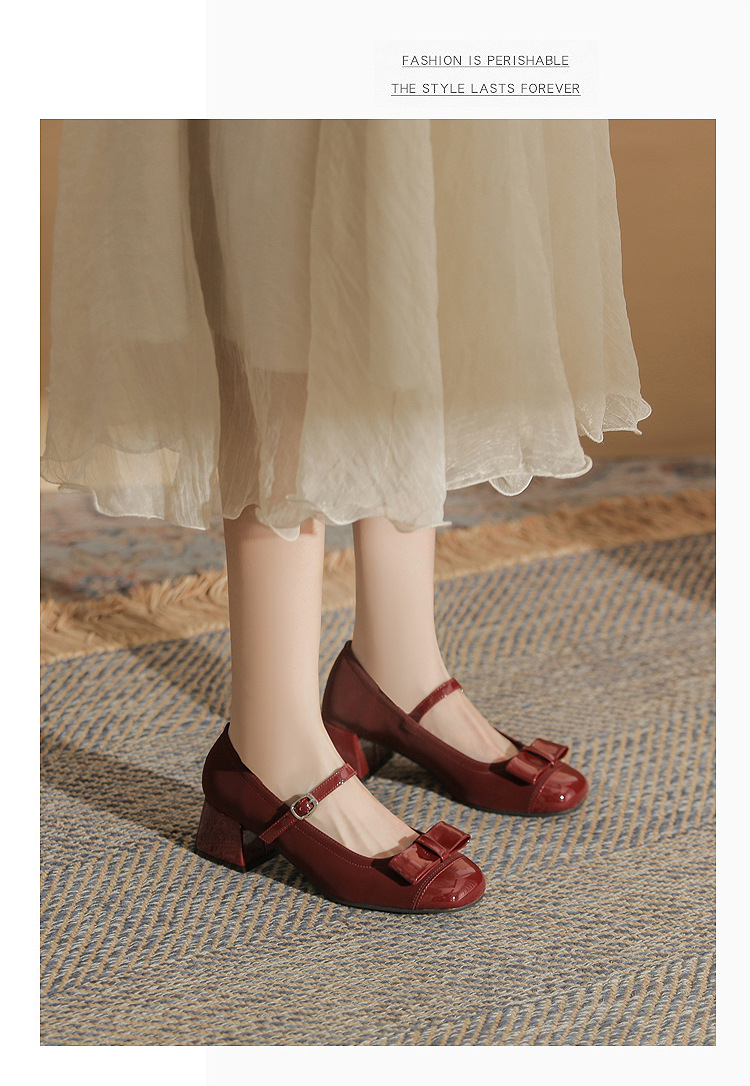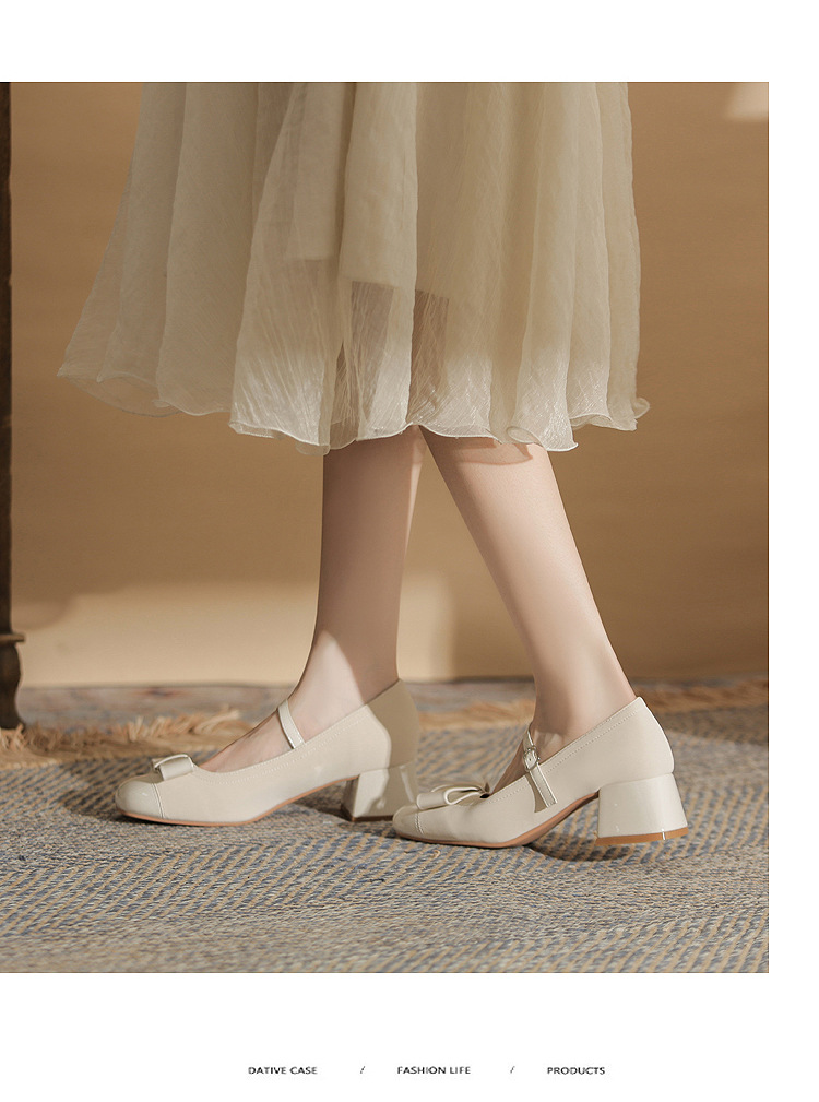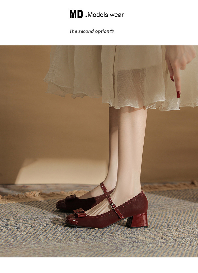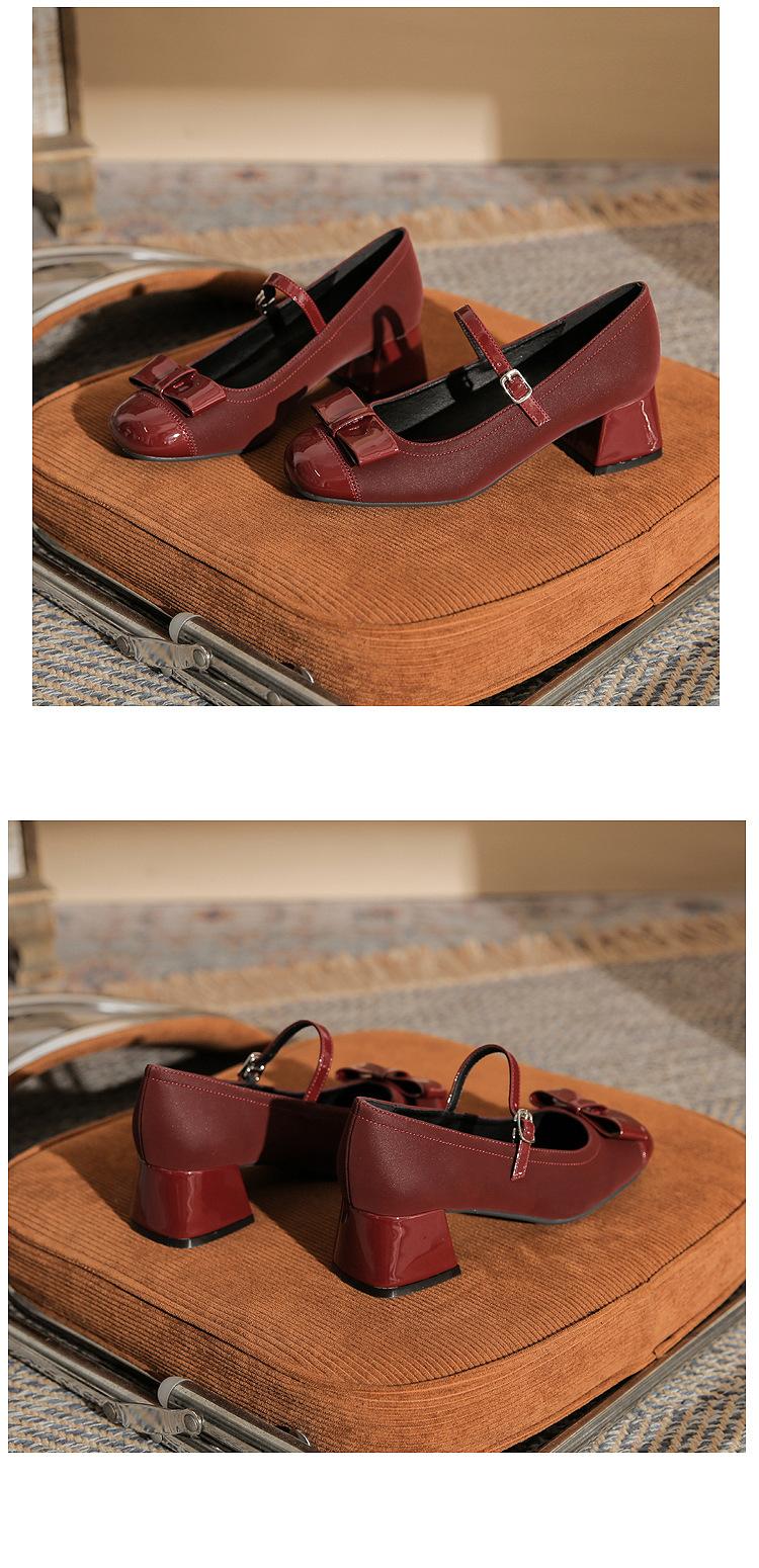 Jin Gang MY4515 청키 힐 메리 제인 여성 신발 2024 새로운 봄 가을 가죽 신발 하이힐 얕은 입 싱글 신발스토어 가기