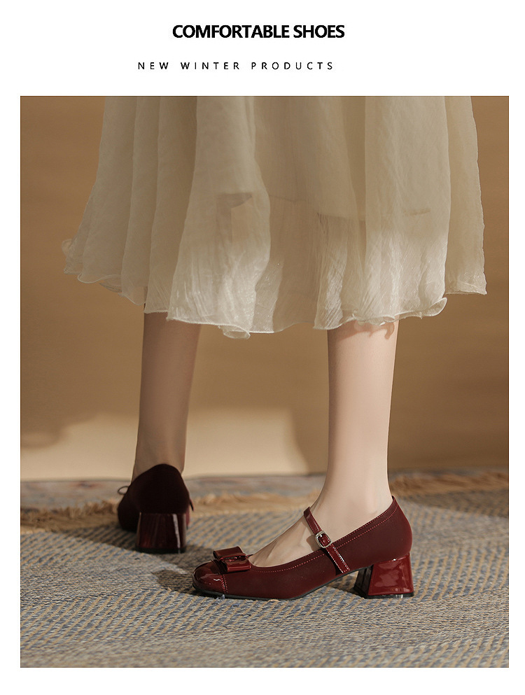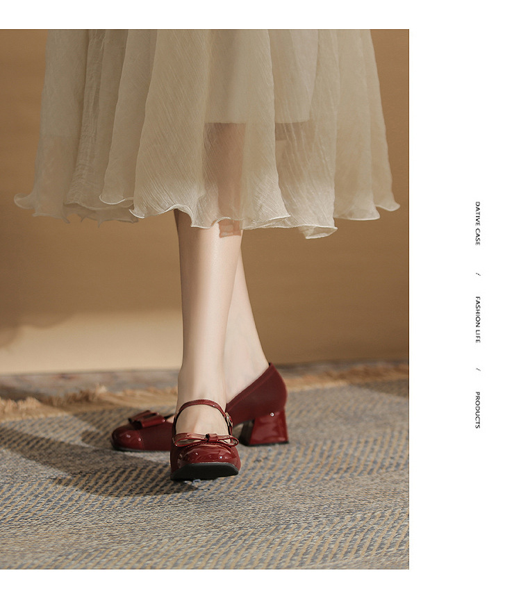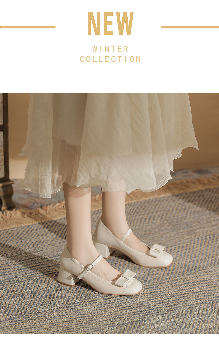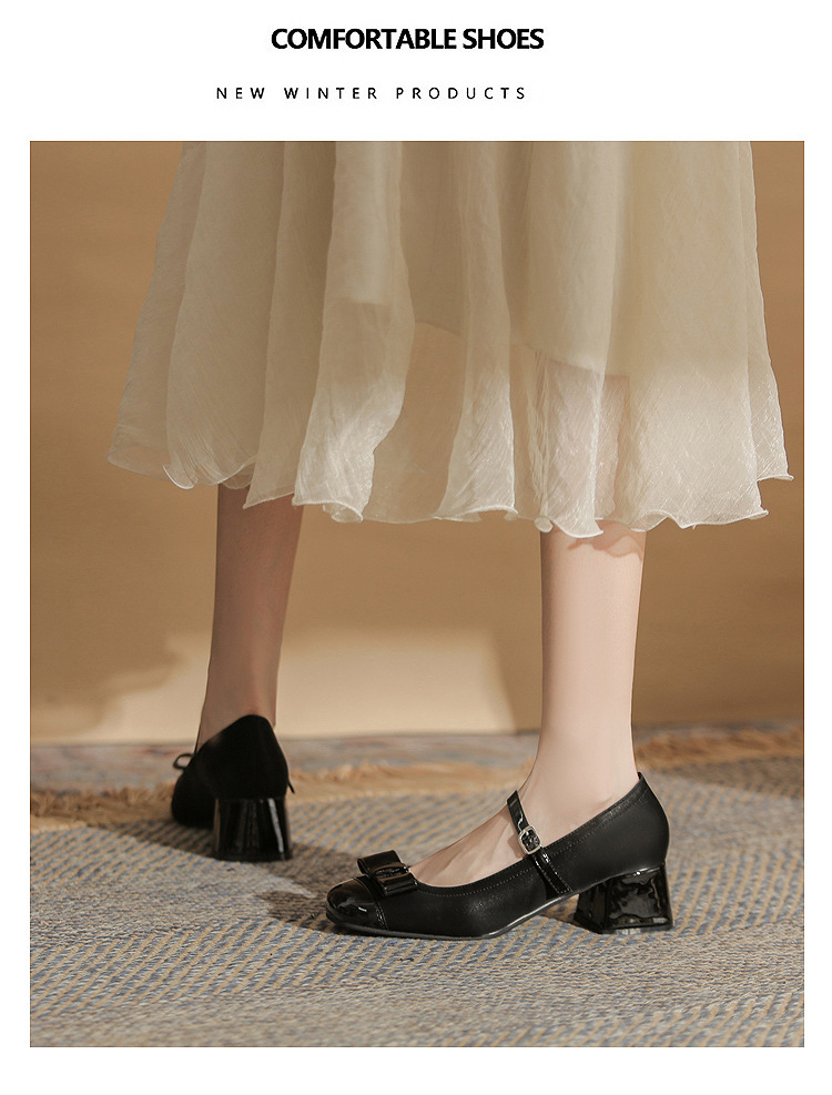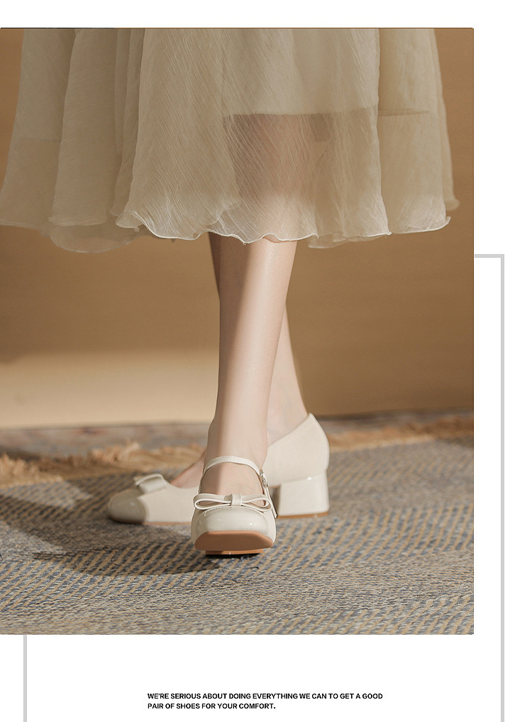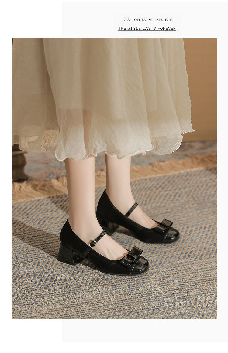 Jin Gang MY4515 청키 힐 메리 제인 여성 신발 2024 새로운 봄 가을 가죽 신발 하이힐 얕은 입 싱글 신발스토어 가기