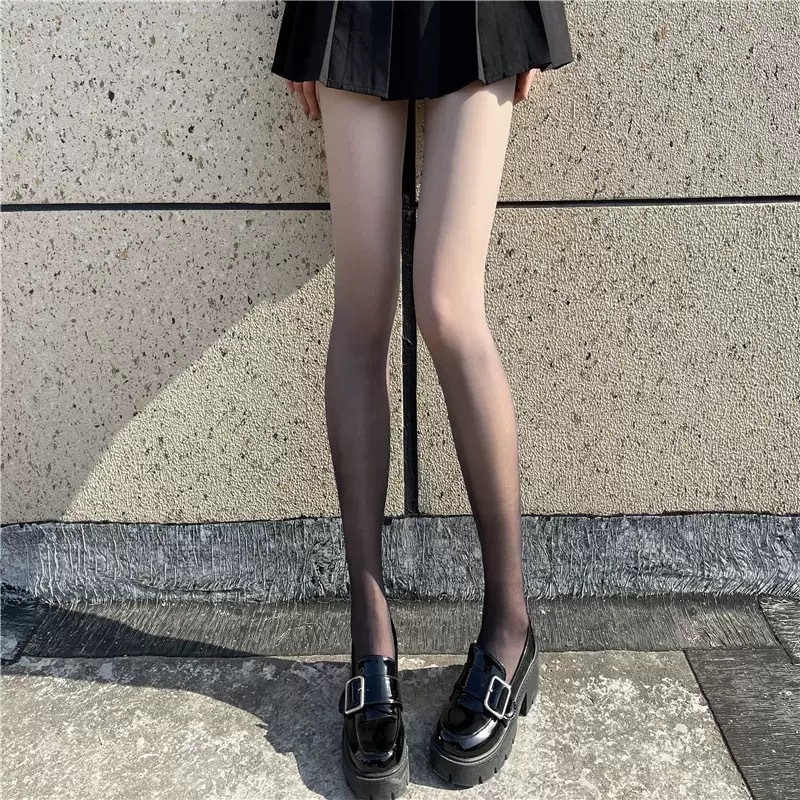 Komankang 모든 컷 그라데이션 컬러 스타킹 여성 여름 섹시한 블랙 스타킹 초박형 안티 스내치 블랙 그레이 원피스 장난 꾸러기