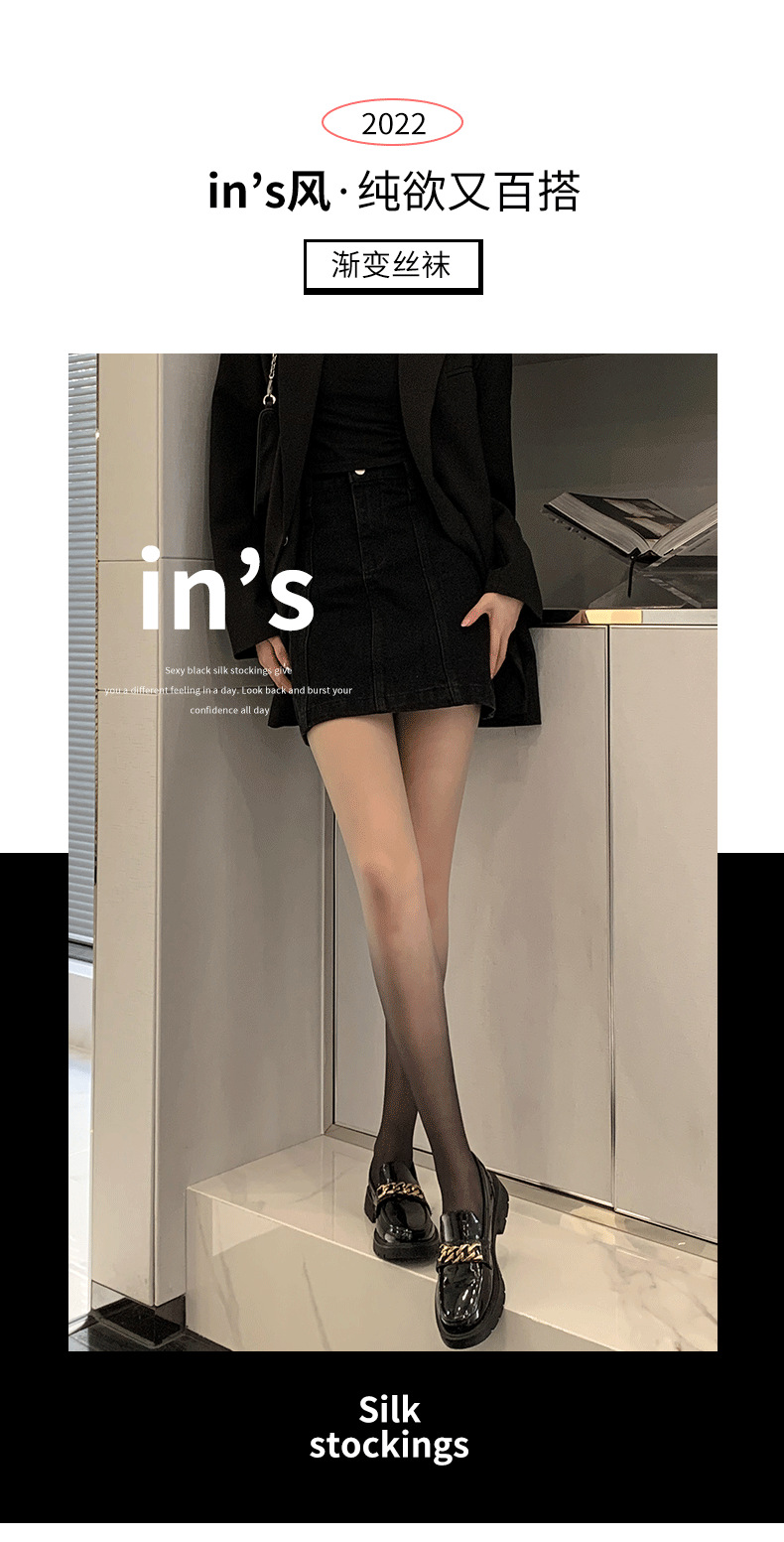 Komankang 모든 컷 그라데이션 컬러 스타킹 여성 여름 섹시한 블랙 스타킹 초박형 안티 스내치 블랙 그레이 원피스 장난 꾸러기스토어 가기