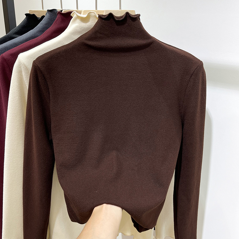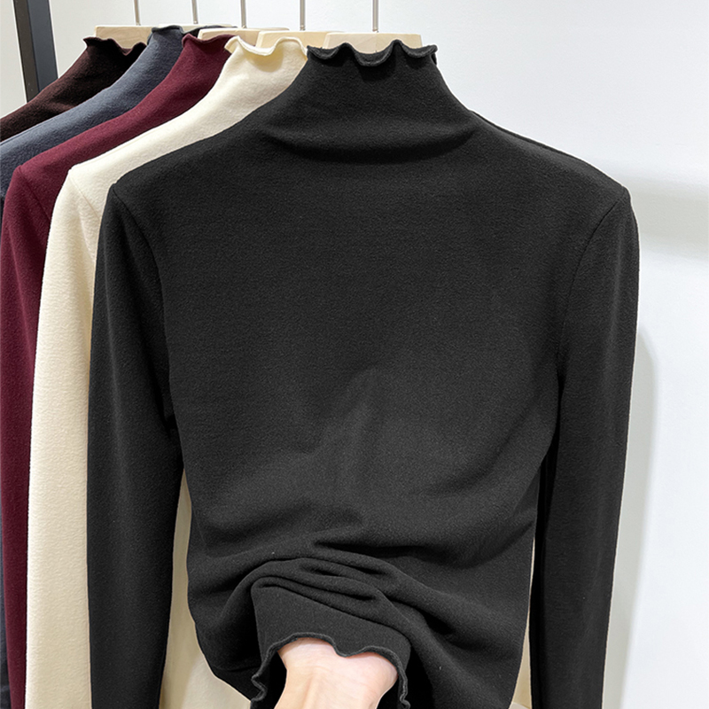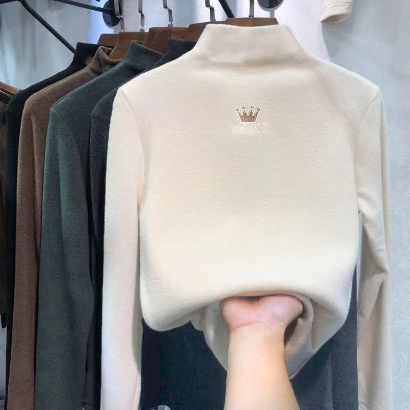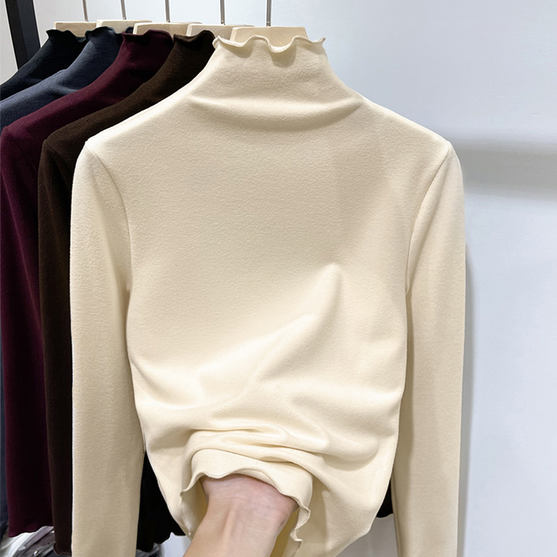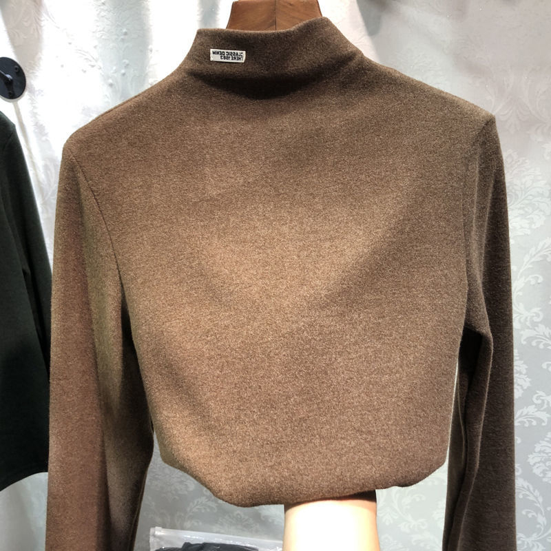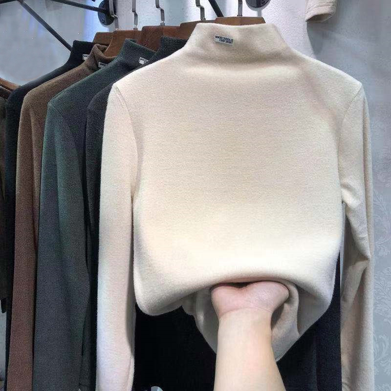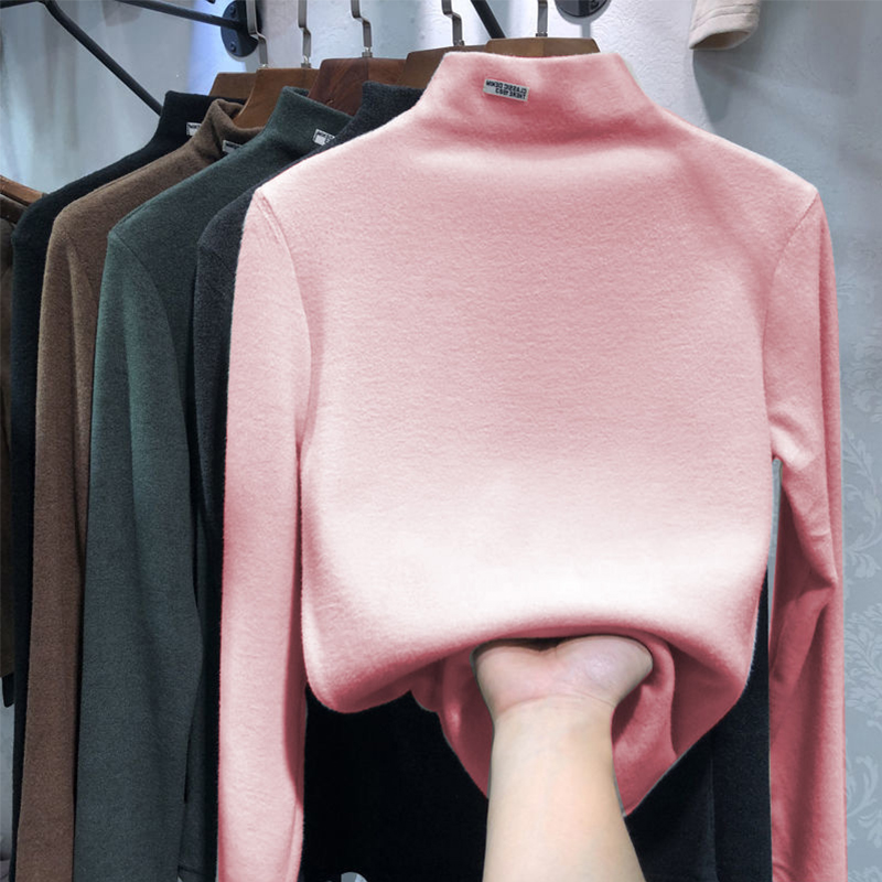 • 살구 [1팩] 솔리드 컬러 저먼 벨벳 하프 터틀넥 - 좋은 품질