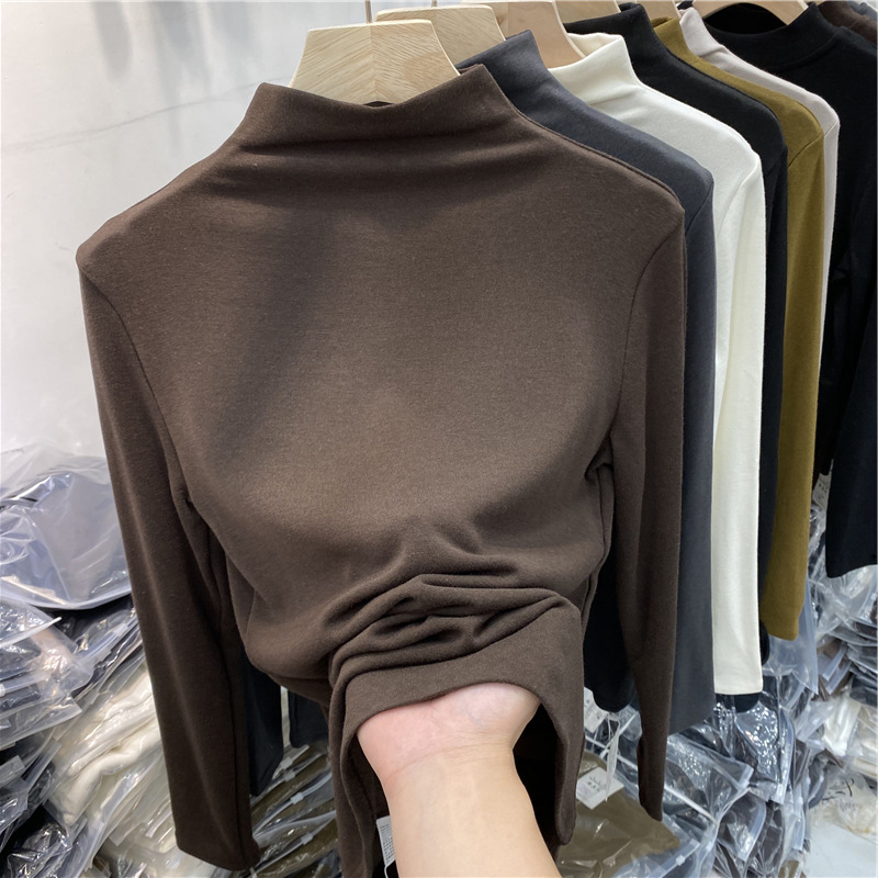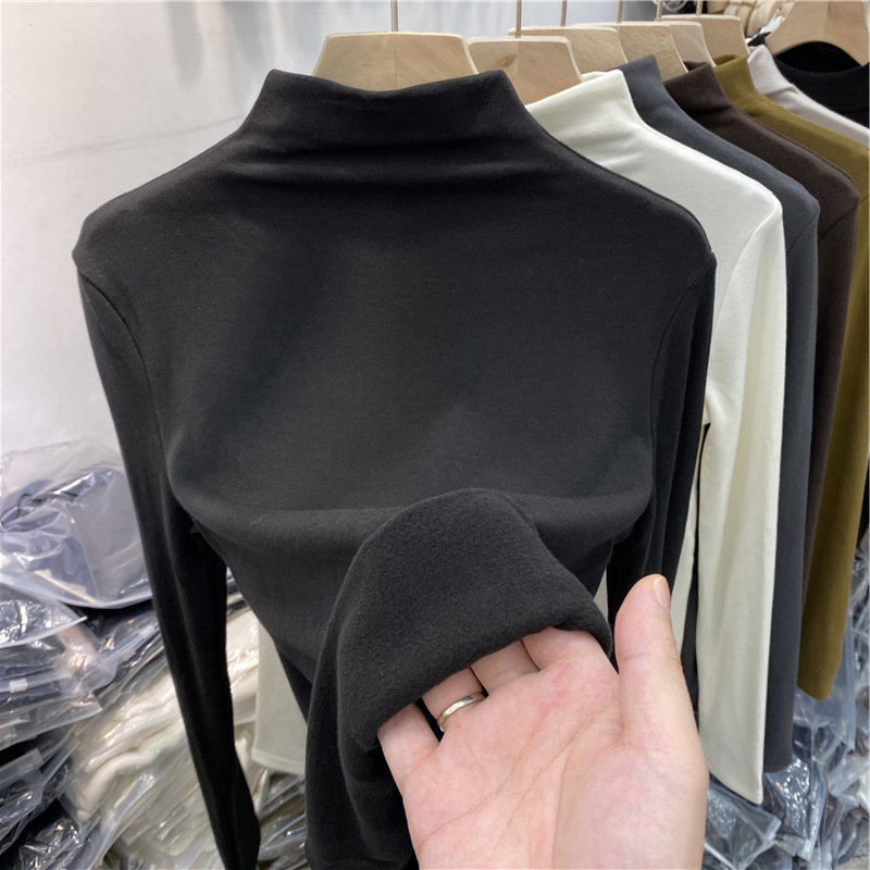 소녀 반 높이 칼라 벨벳베이스 셔츠 봄 가을 내과 중대형 어린이 가을 옷 어린이 가을과 겨울 기모 따뜻한 탑