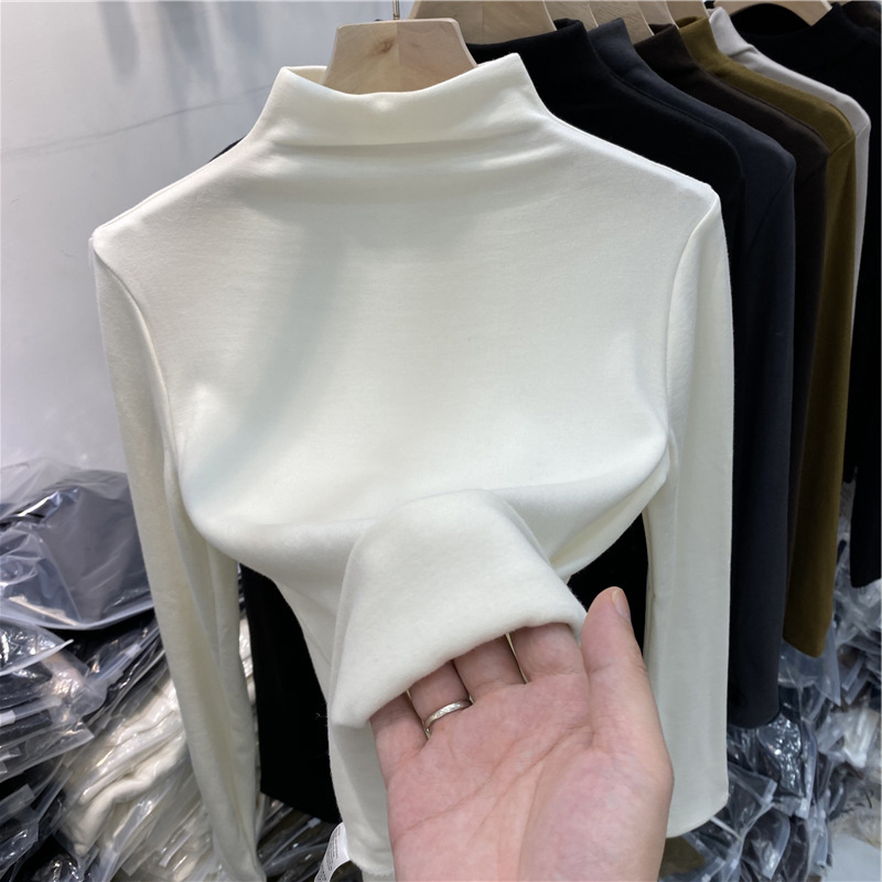 • 화이트 [1팩] 솔리드 컬러 저먼 벨벳 하프 터틀넥 - 좋은 품질