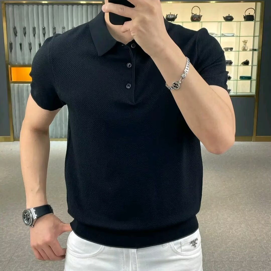 폴로 셔츠 니트 반팔 티셔츠 남자 2024 년 새 여름 쿨 솔리드 컬러 심플 반소매 랩 탑 트렌디
