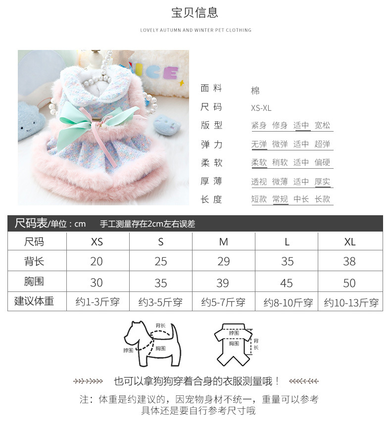 개 옷 가을과 겨울 두꺼운 고양이 공주 원피스 판타지 샤넬 견인 작은 개 테디 애완 동물 5858스토어 가기