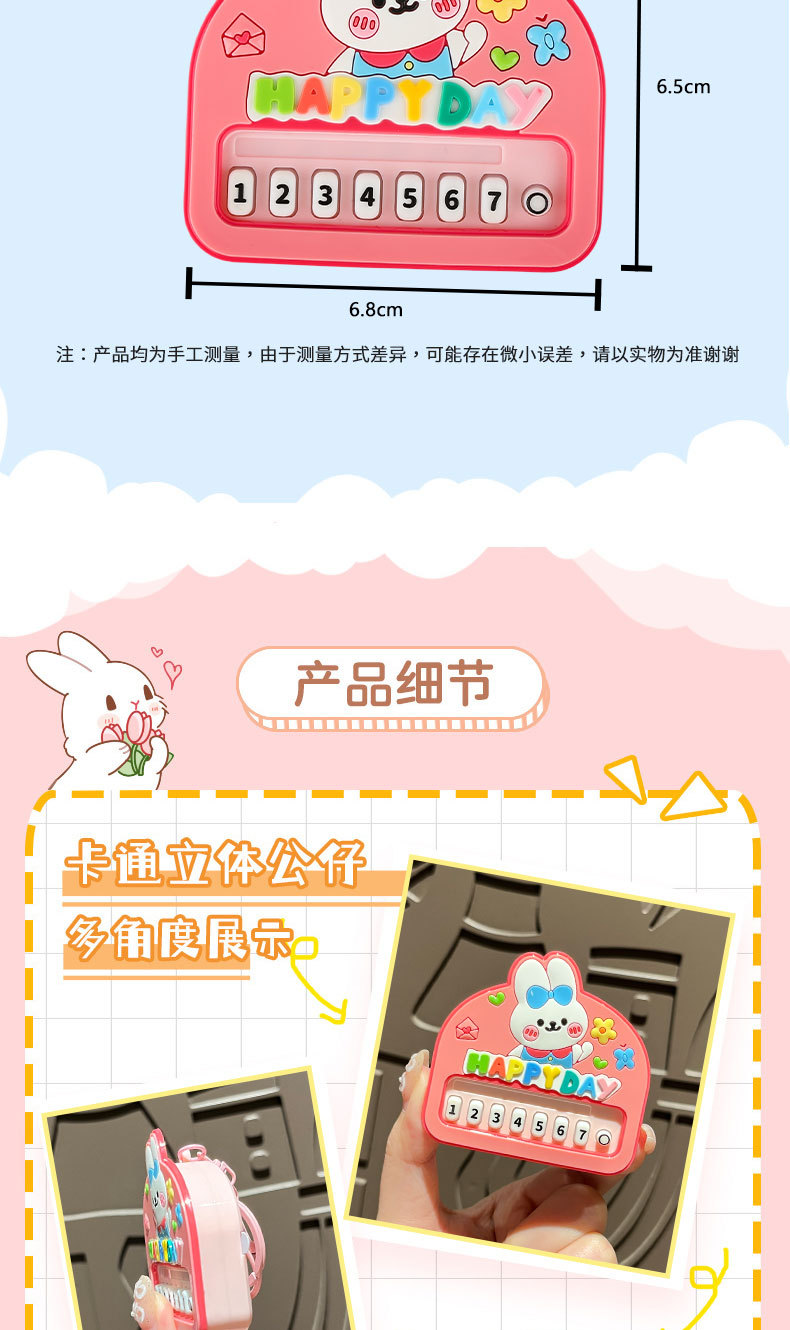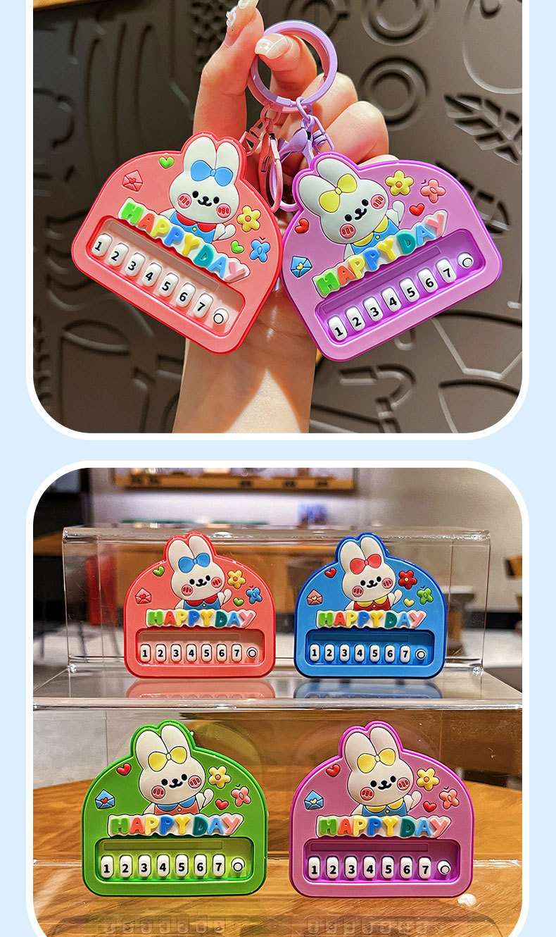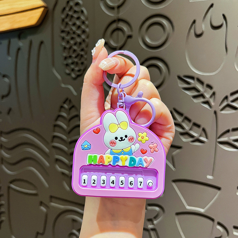 원래 행복 한 토끼 음악 피아노 장난감 키 체인 만화 귀여운 학생 배낭 펜던트 아기 기계 작은 선물스토어 가기