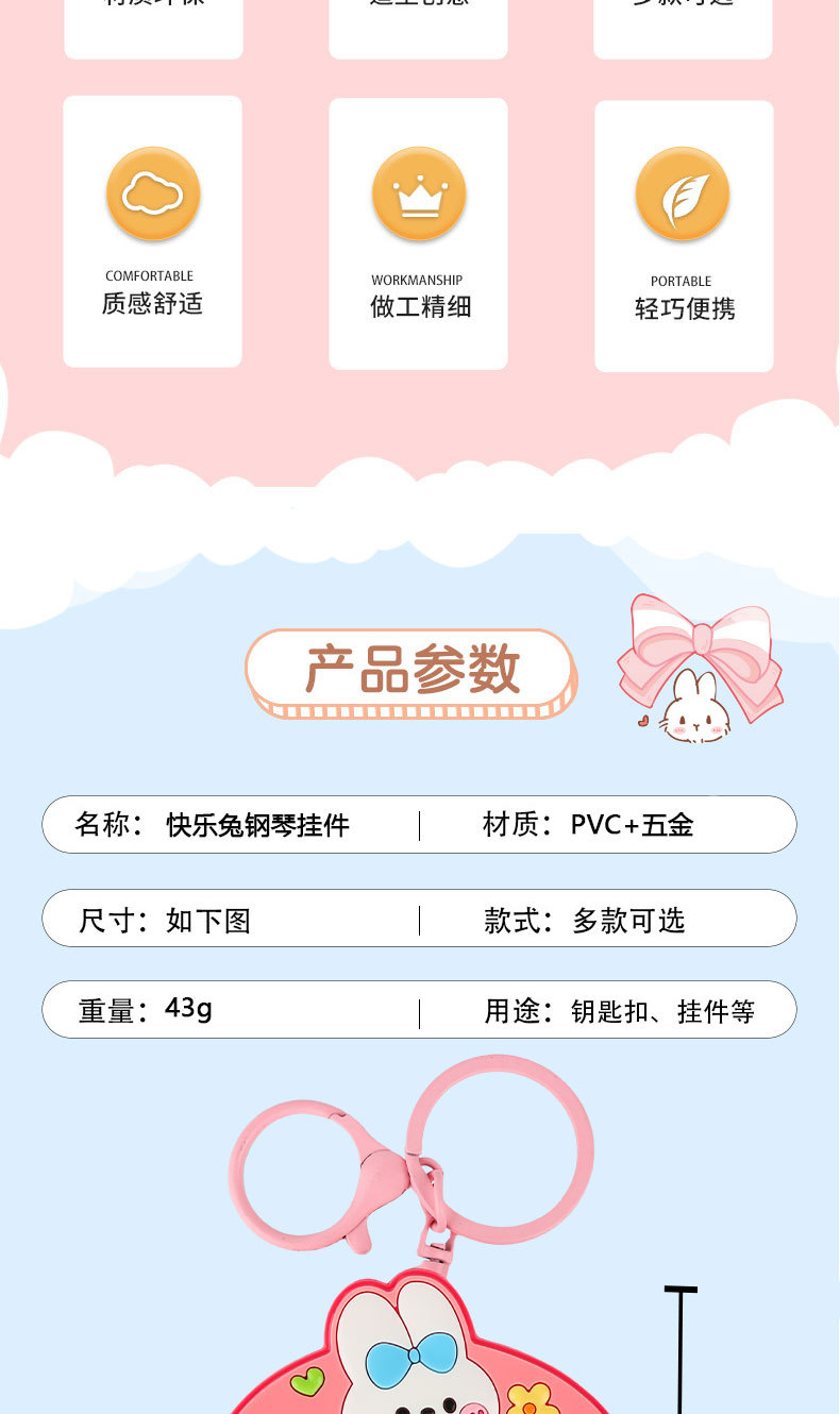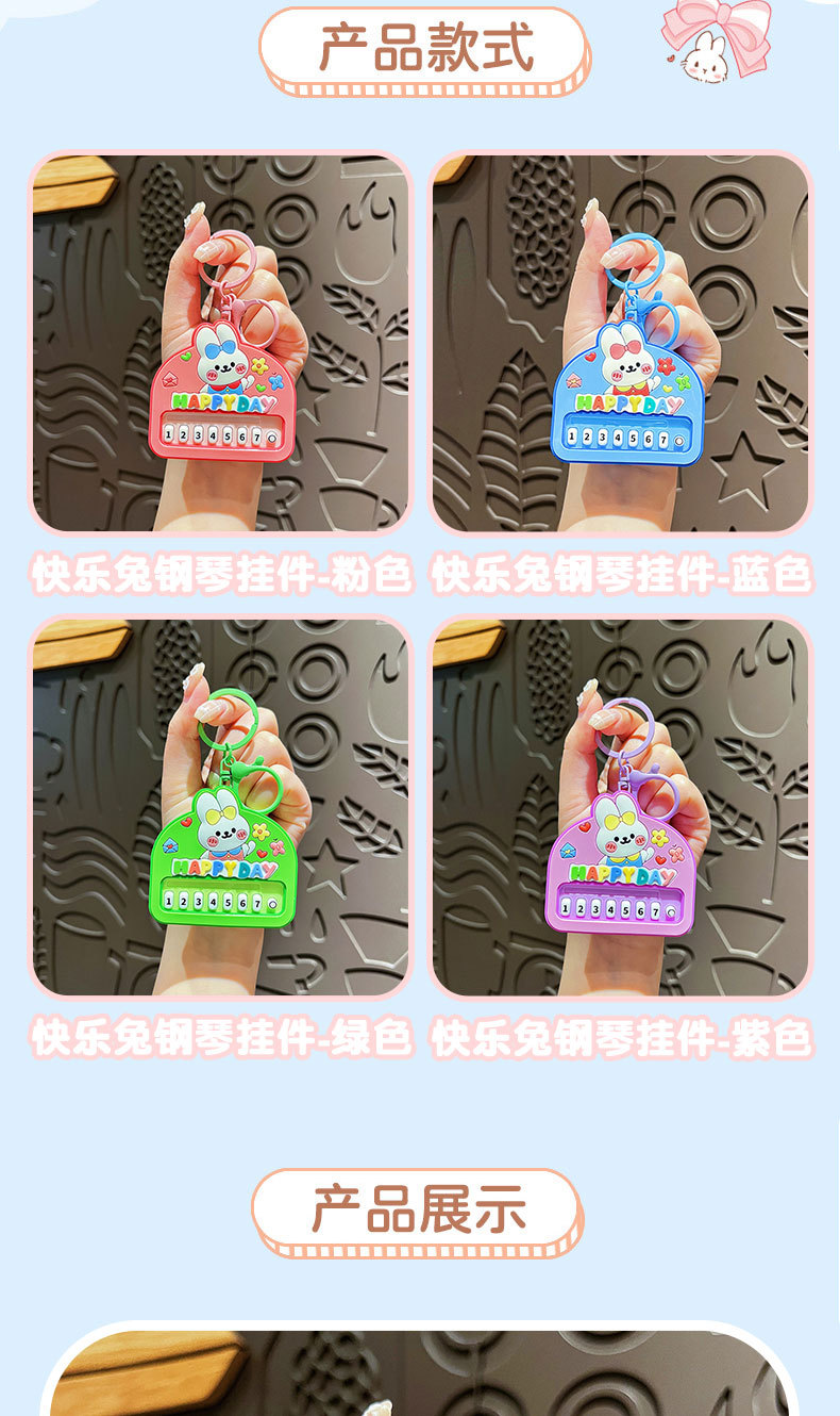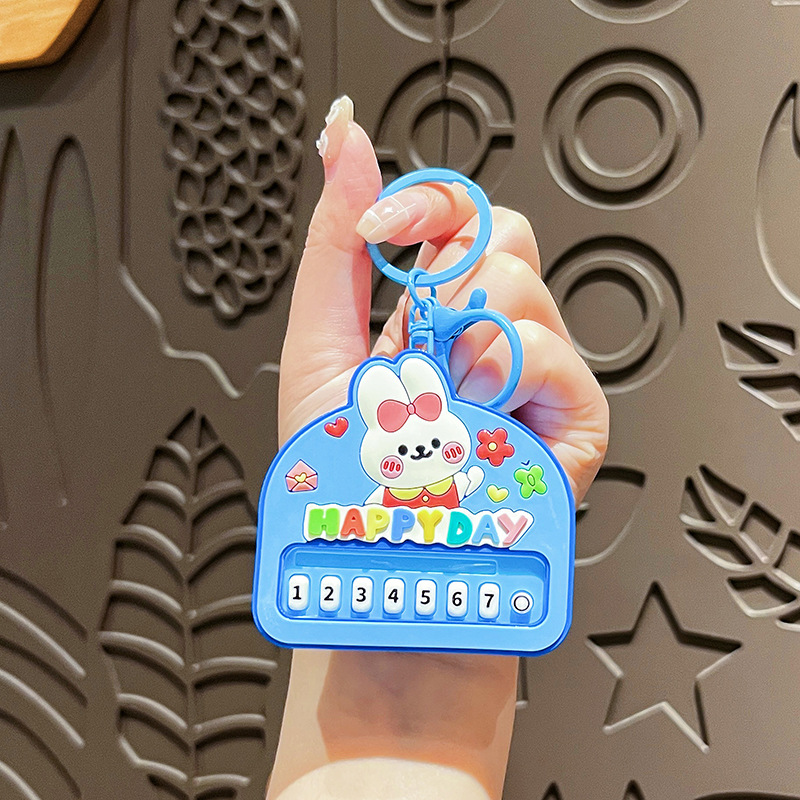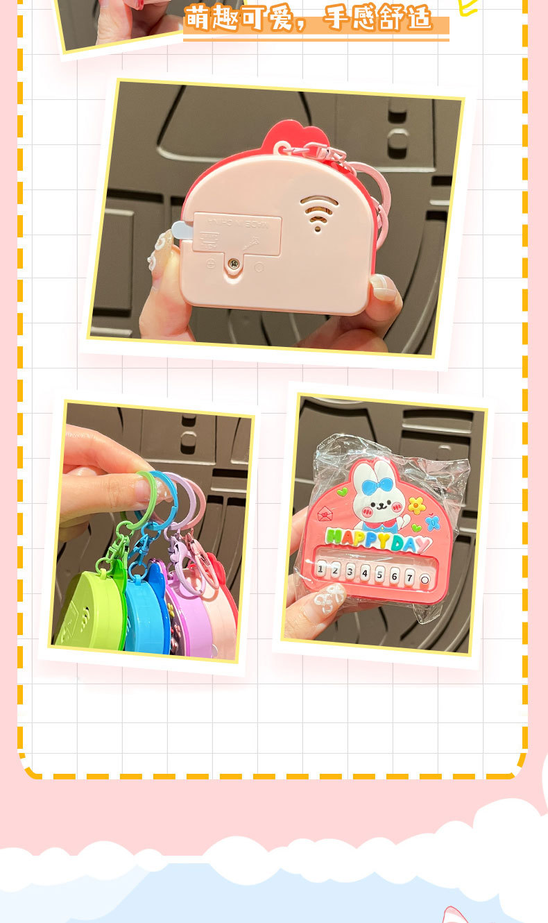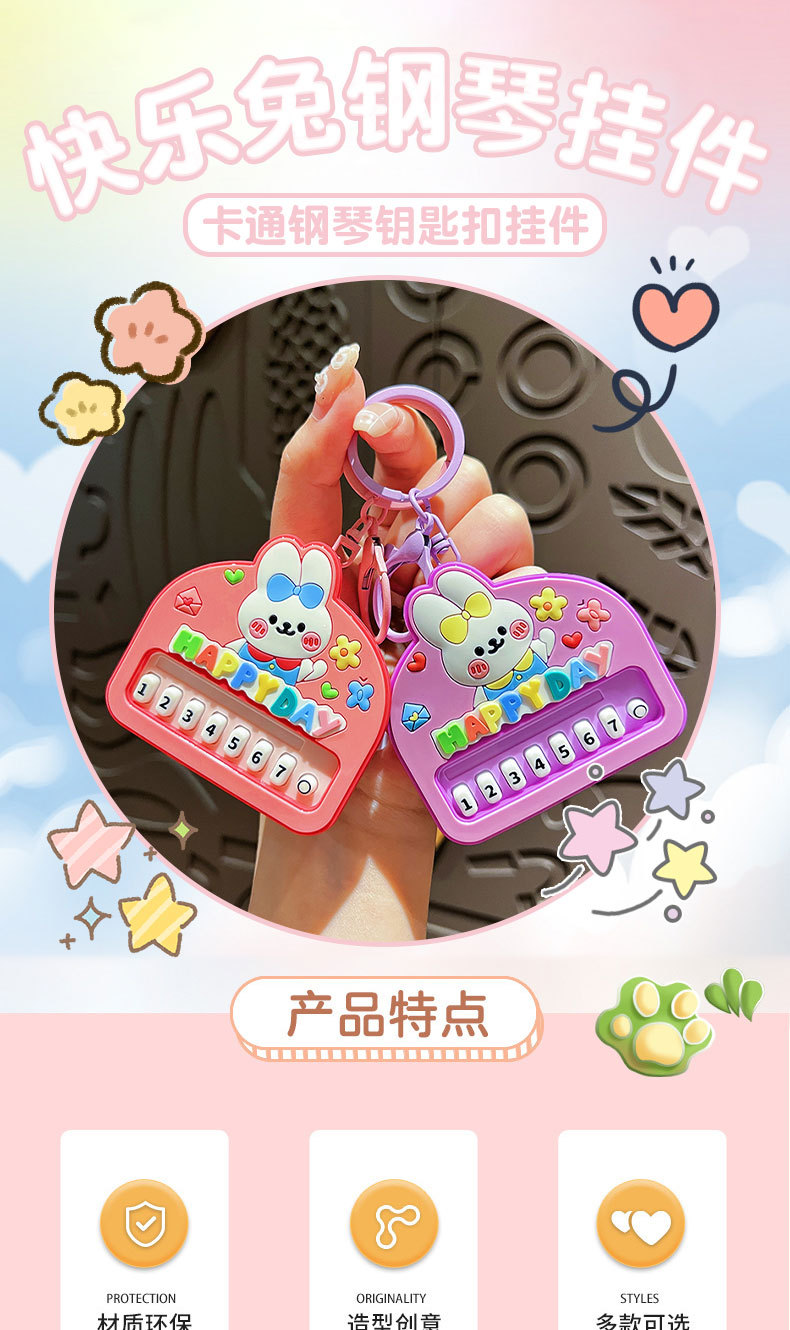 원래 행복 한 토끼 음악 피아노 장난감 키 체인 만화 귀여운 학생 배낭 펜던트 아기 기계 작은 선물