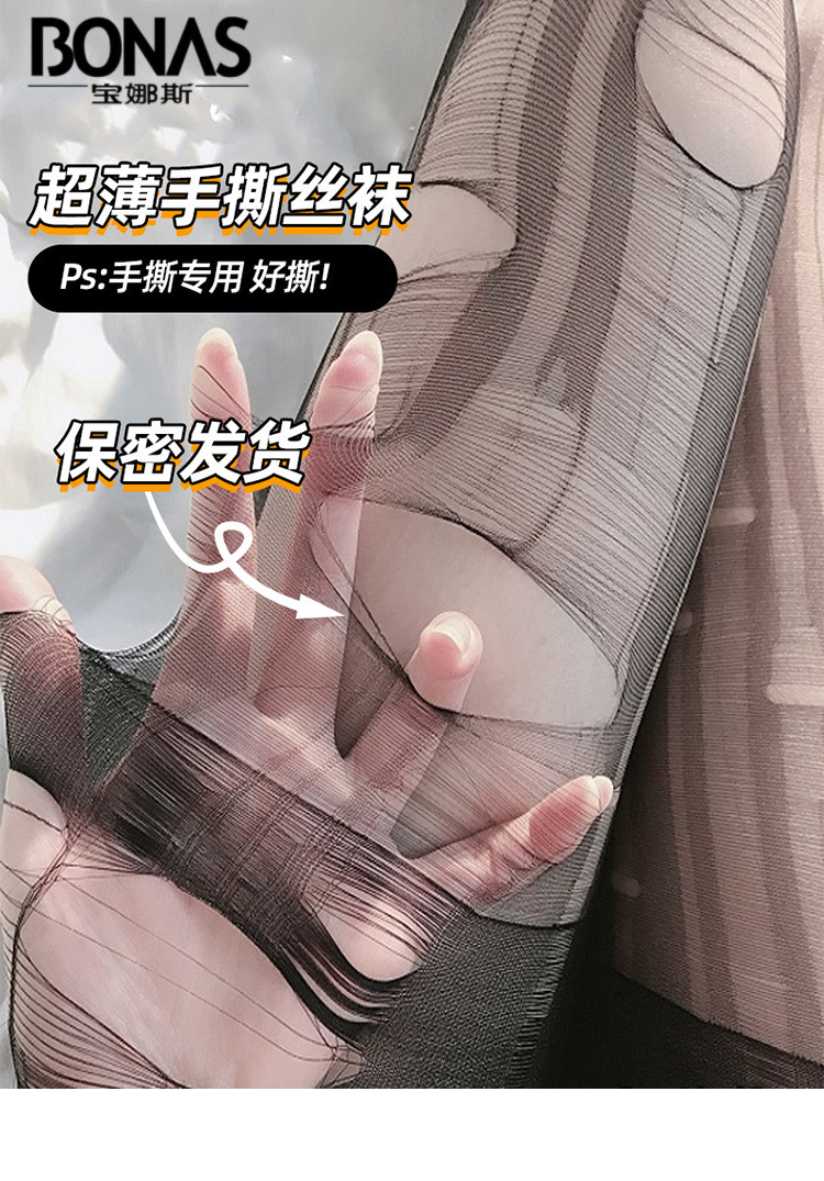 여성용 코만캉 손으로 찢을 수 있는 스타킹, 찢을 수 있는 섹시하고 흥미로운 초박형 일회용 검은색 스타킹, 벗을 필요 없고 쉽게 찢을 수 있는 스타킹스토어 가기