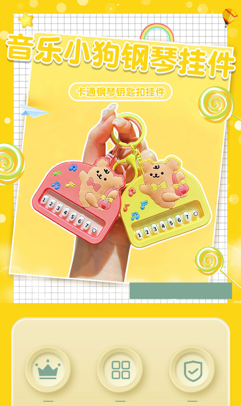 • 뮤지컬 강아지 피아노 펜던트-옐로우