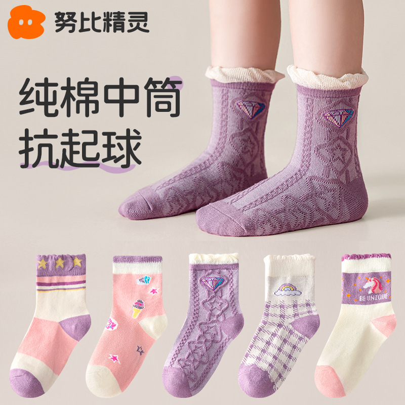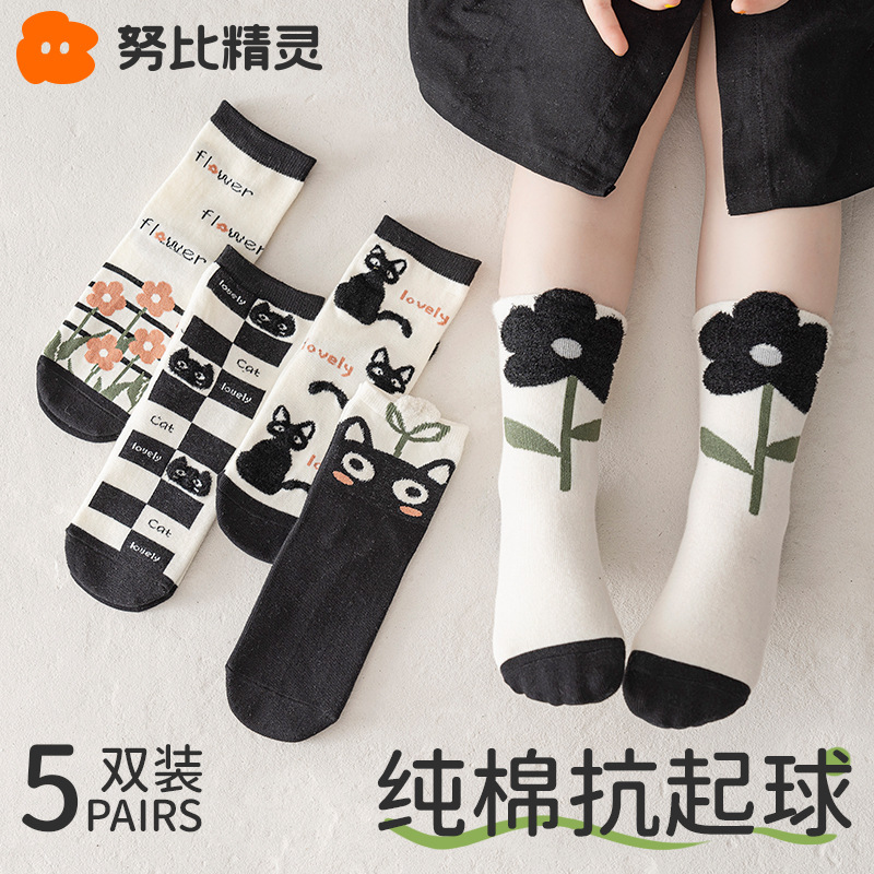 • 웃는 소녀 - 5켤레 [신축성 있는 양말이 꽉 끼지 않음]
