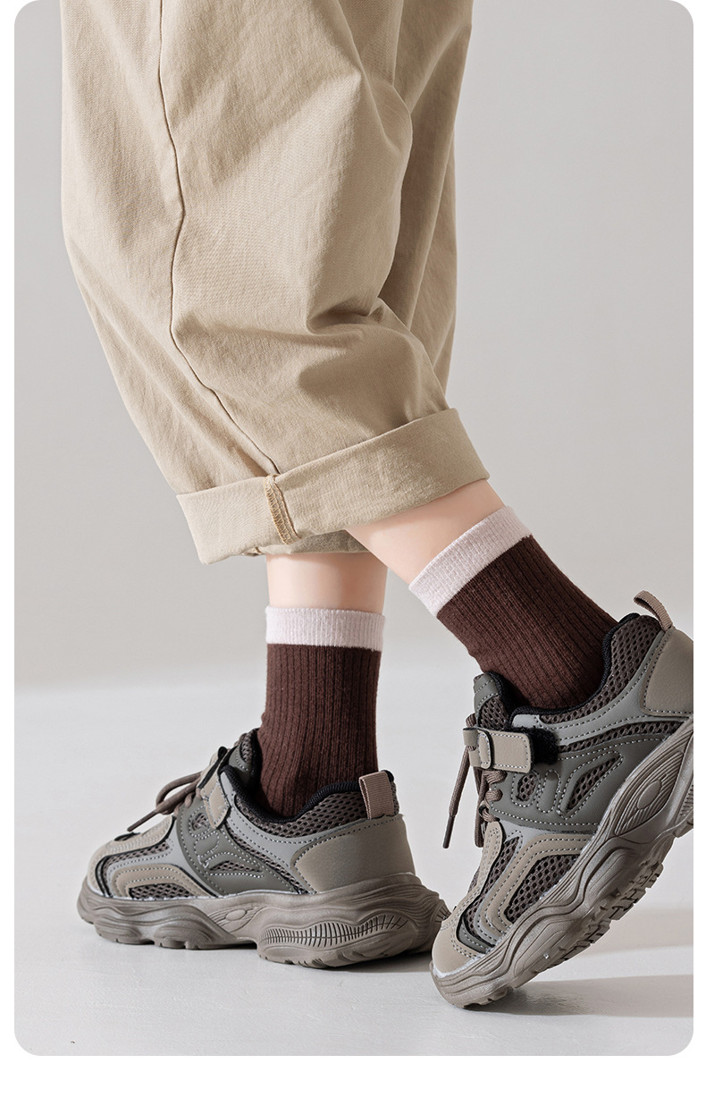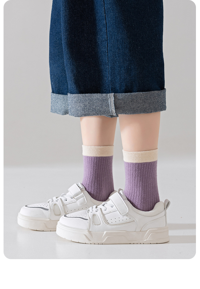 어린이 양말 봄과 가을 면화 양말 소년과 소녀 가을 단색 스포츠 유행 양말 아기 가을 및 겨울 중 및 노인 어린이 면화 양말