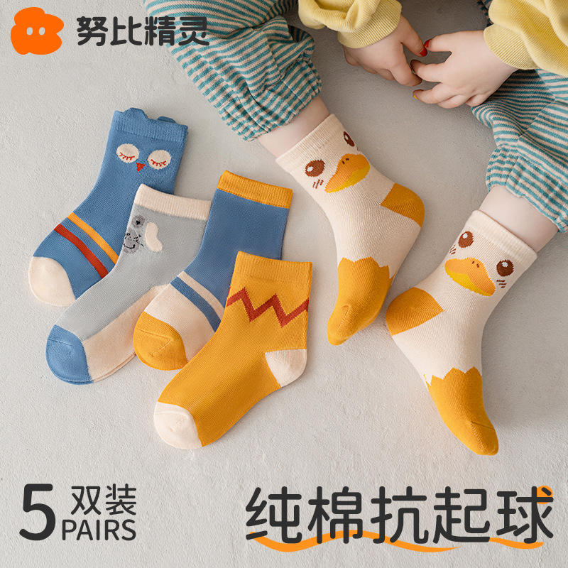 • 귀여운 오리 - 5켤레 [순면 보풀방지 종아리 양말]