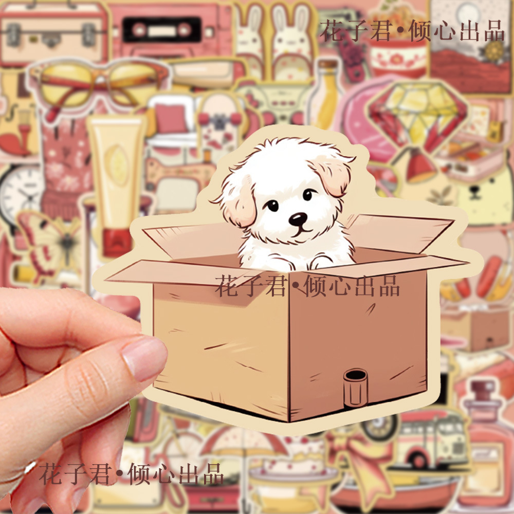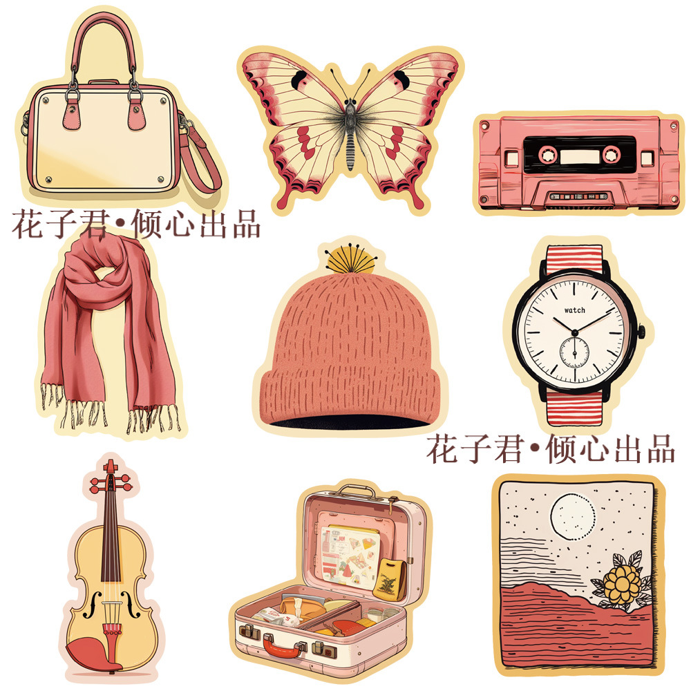 • 분홍색과 노란색 소품 스티커 60개 + 스티커 상자 - 잘생긴 공주님, 주문하세요 = 빠른 배송 + 제품