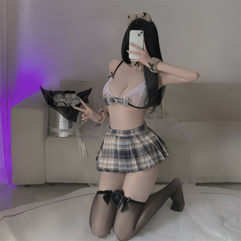 섹시한 란제리 섹시한 곰 학생 원피스 3 점 그리드 주름 치마 유니폼 세트 305스토어 가기