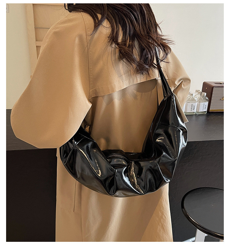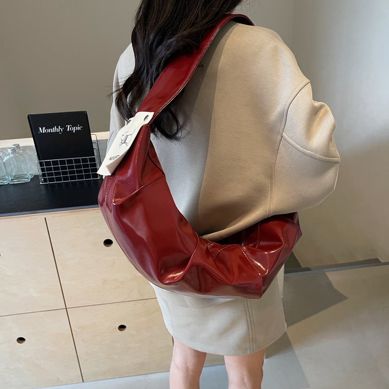 한국 스타일 복고풍 부드러운 가죽 주름 만두 가방 여성 가을, 겨울 새로운 대용량 뿔 와이드 통근 패션 숄더백