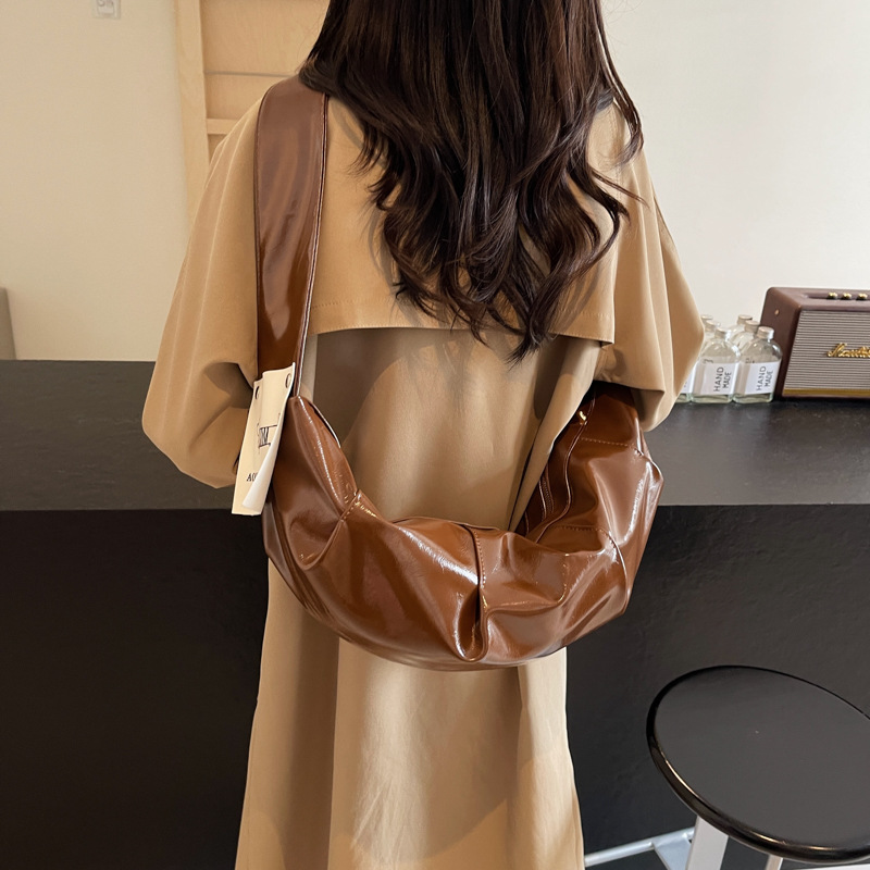 한국 스타일 복고풍 부드러운 가죽 주름 만두 가방 여성 가을, 겨울 새로운 대용량 뿔 와이드 통근 패션 숄더백스토어 가기