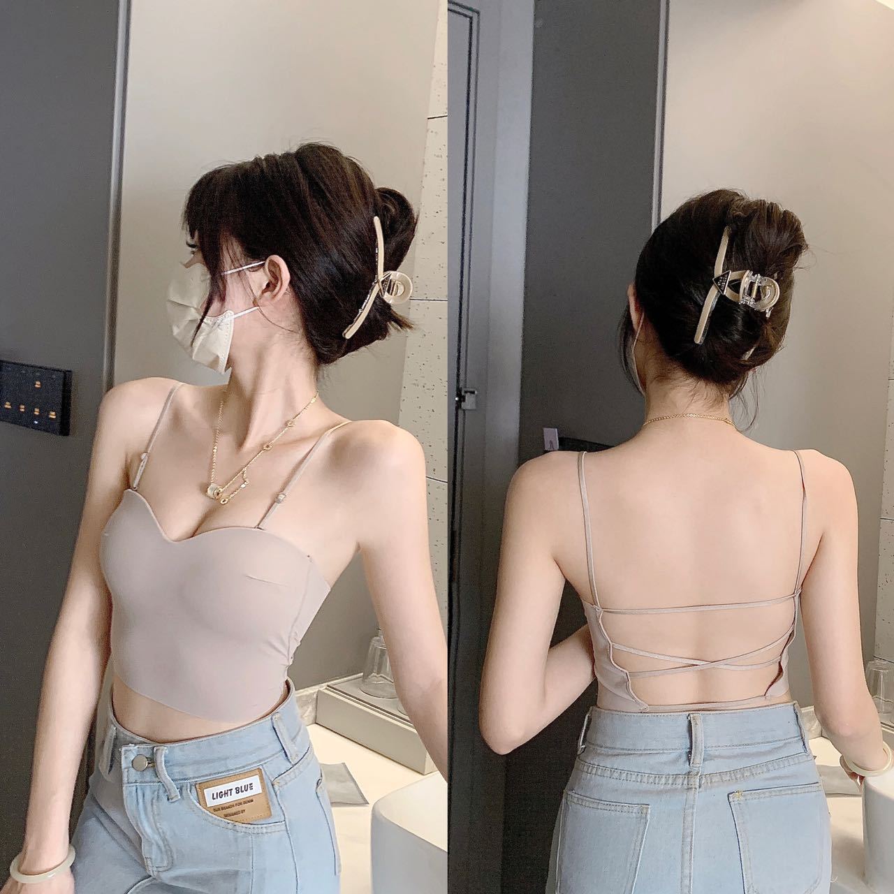 여름 아이스 실크 가슴 랩 슬링 고정 컵 조끼 여성 크로스 아름다운 백 속옷 여성의 편안한 스틸 링 내부 튜브 탑
