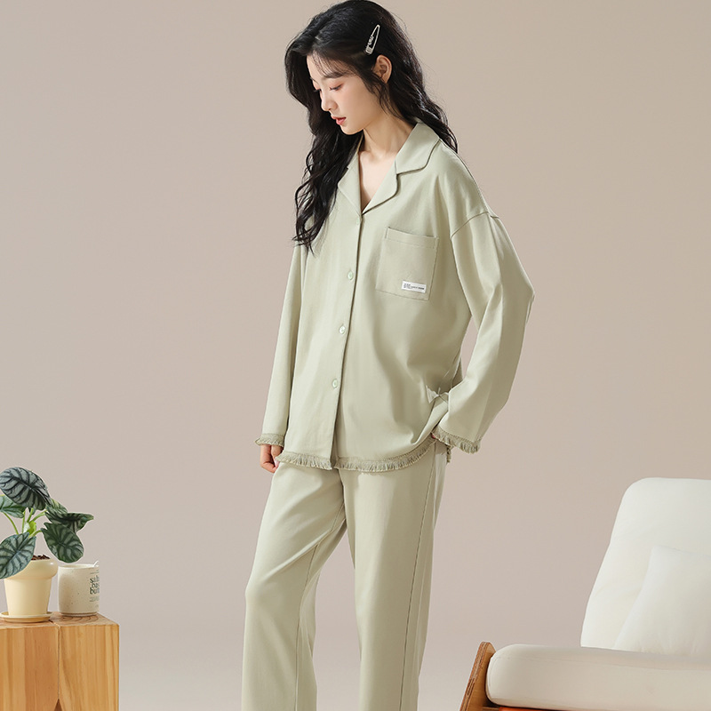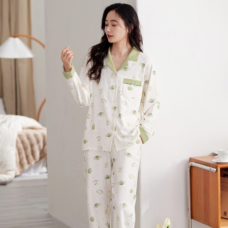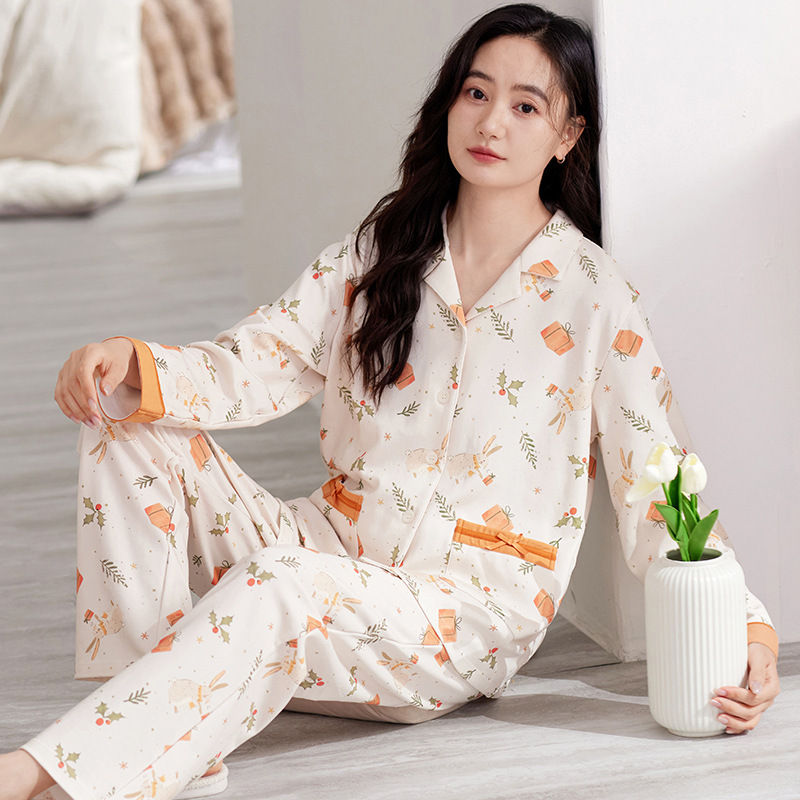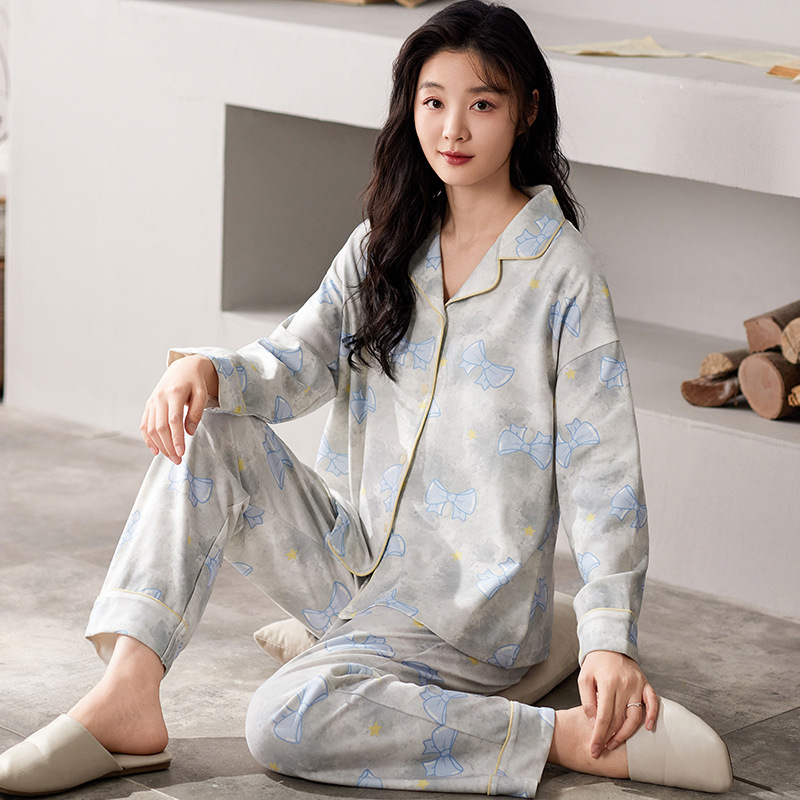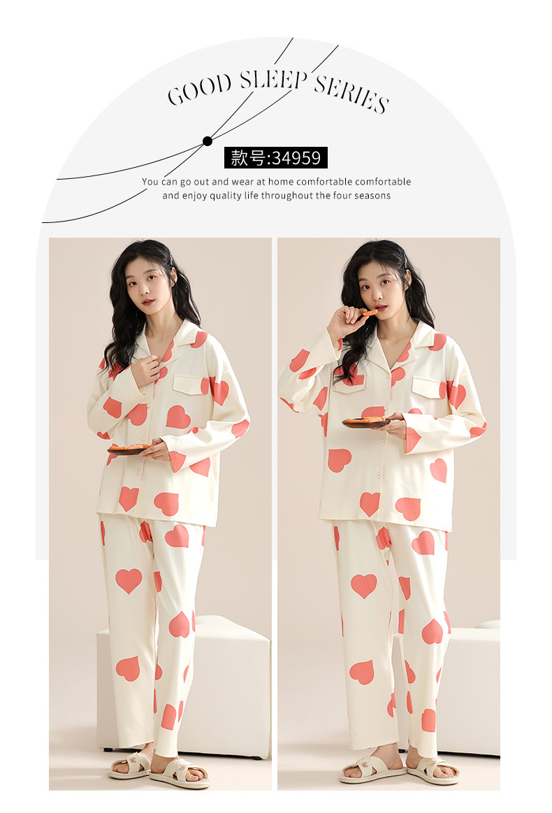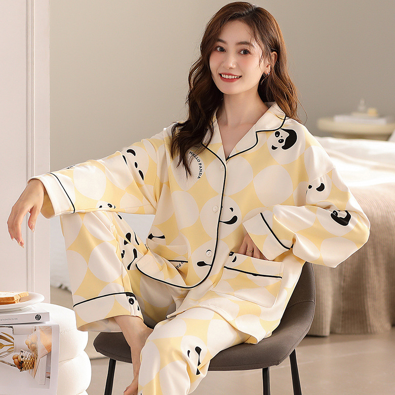 여성용 잠옷 가을 긴팔 긴바지 세트 봄 가을 여성용 달콤한 홈웨어 가디건 외출 가능 루즈 핫템스토어 가기