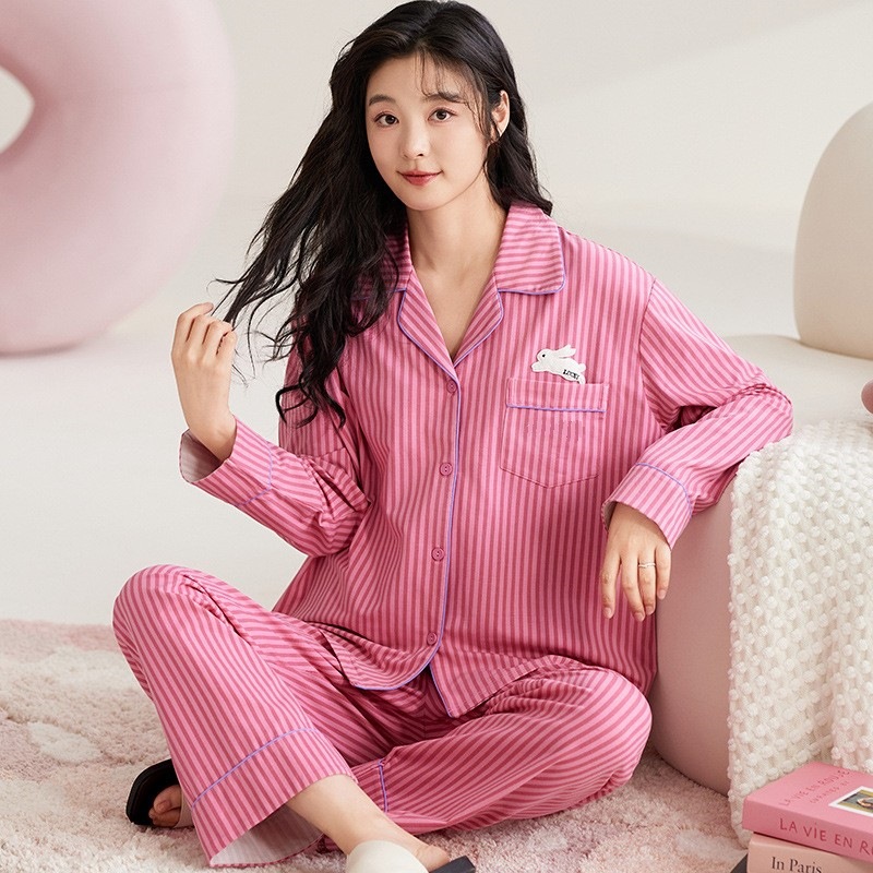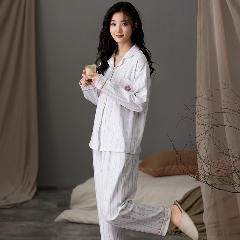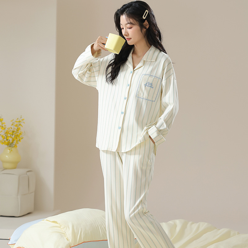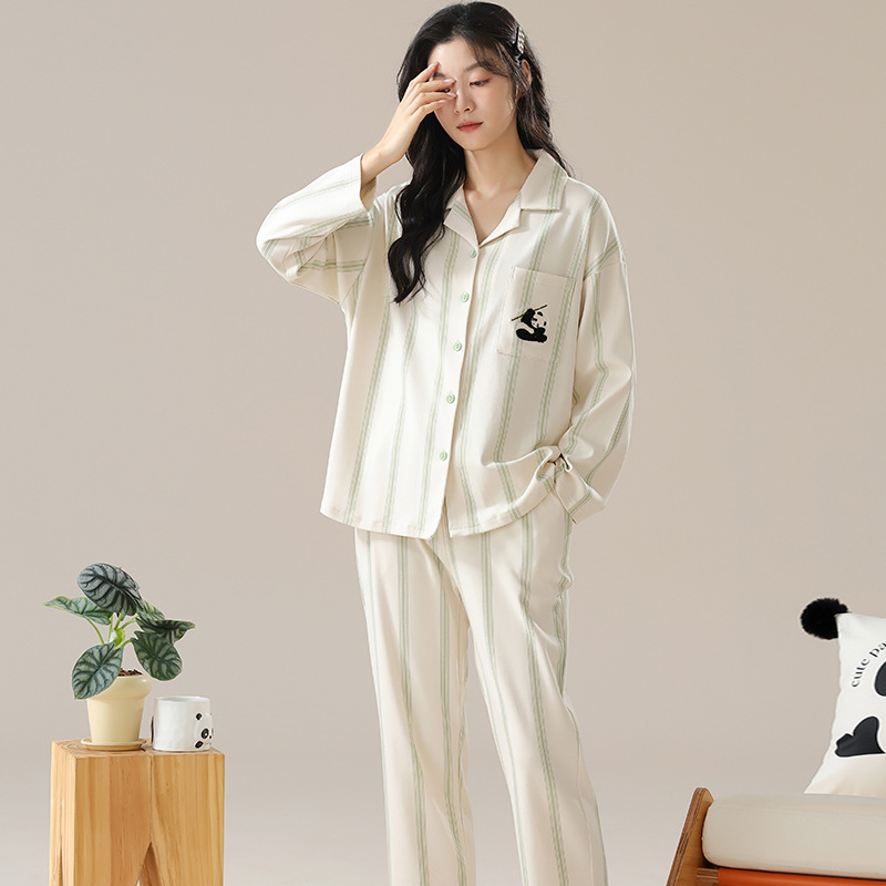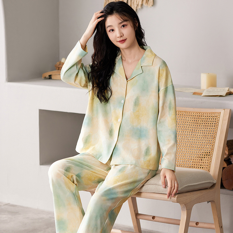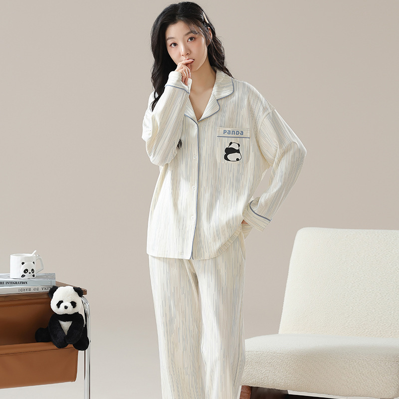 여성용 잠옷 가을 긴팔 긴바지 세트 봄 가을 여성용 달콤한 홈웨어 가디건 외출 가능 루즈 핫템스토어 가기