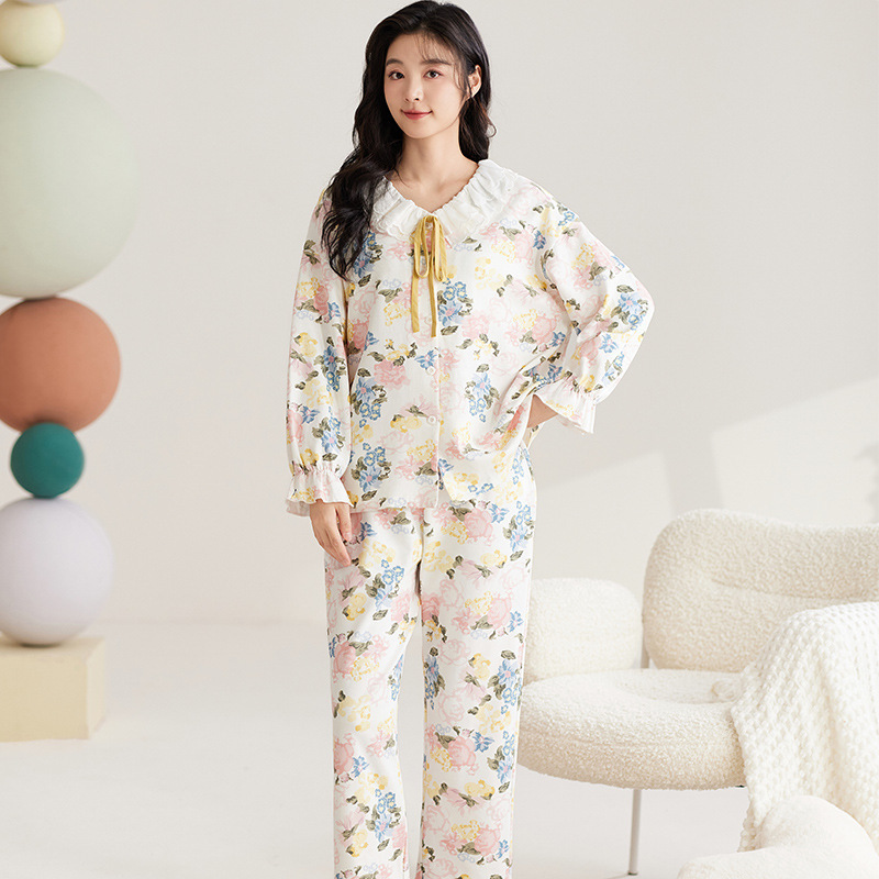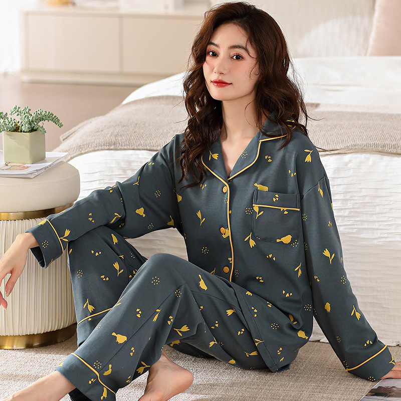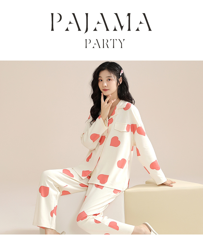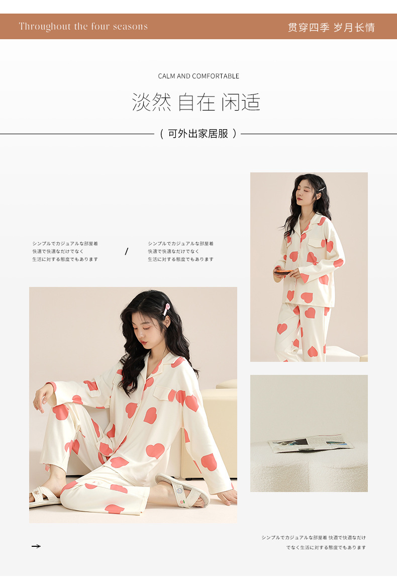 여성용 잠옷 가을 긴팔 긴바지 세트 봄 가을 여성용 달콤한 홈웨어 가디건 외출 가능 루즈 핫템