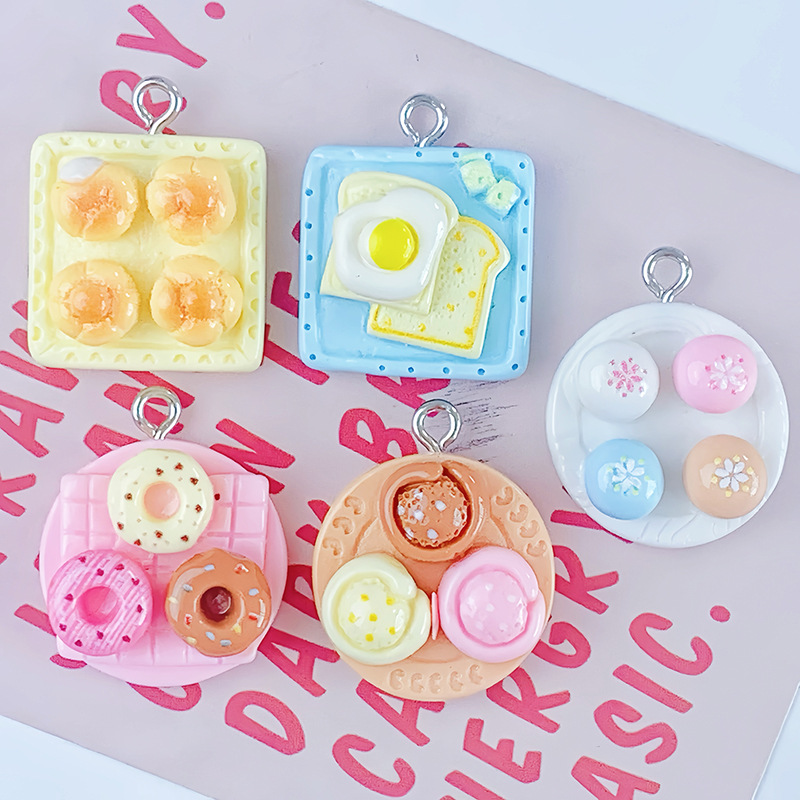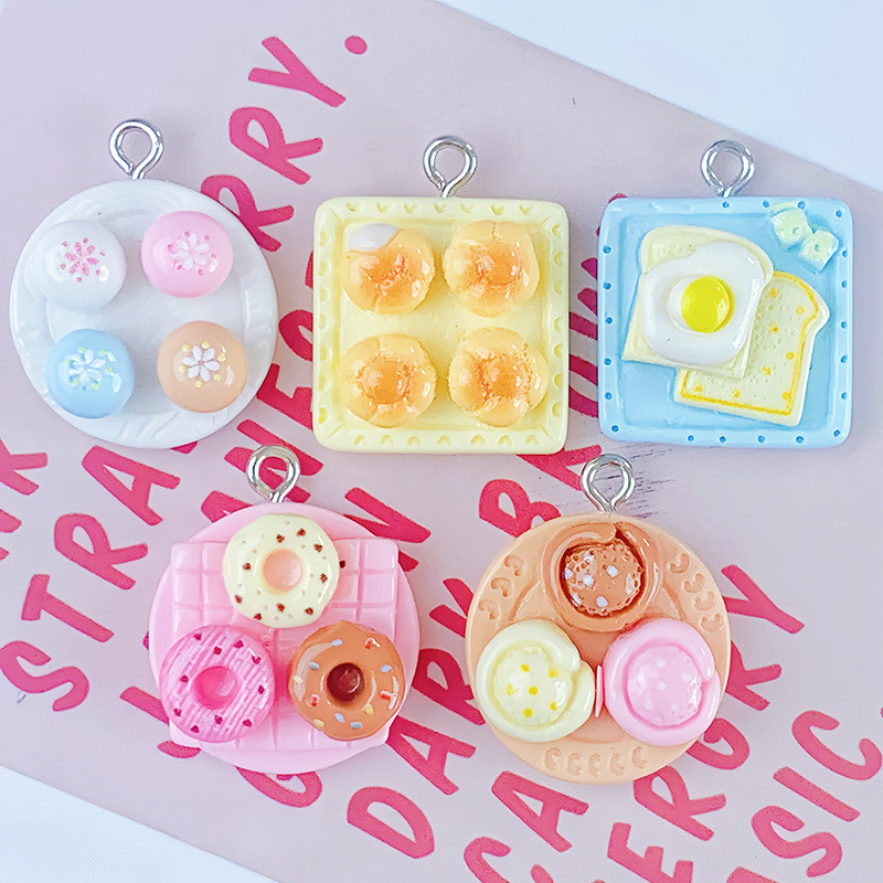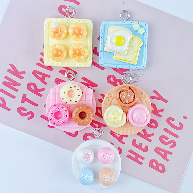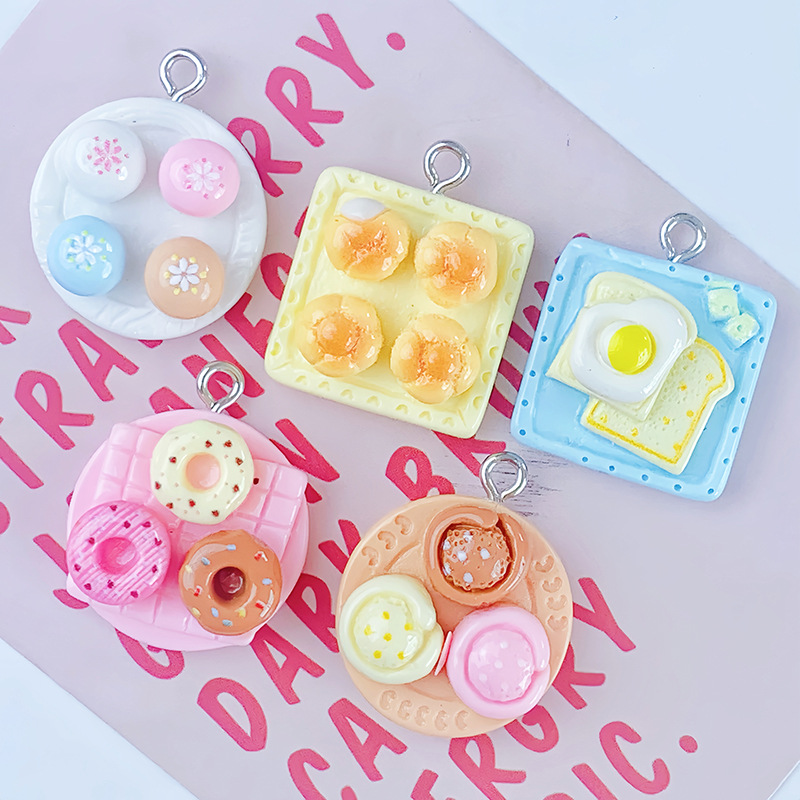 반 입체 음식 놀이 오후 차 스낵 도넛 빵 수지 액세서리 DIY 키 체인 펜던트 펜던트 장식