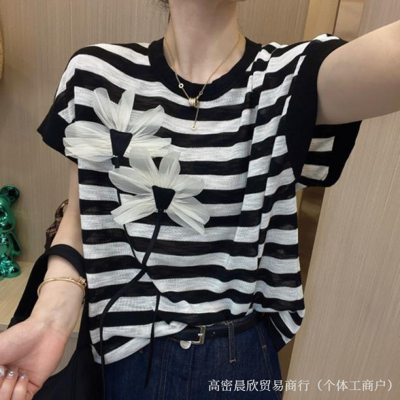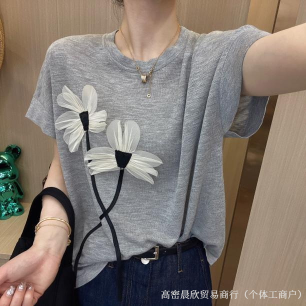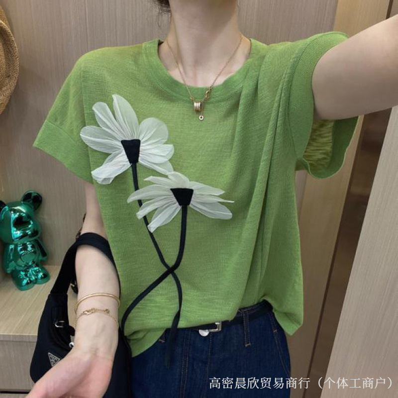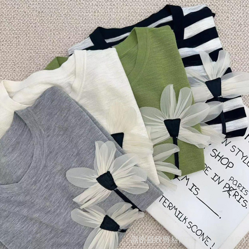 슬리밍 패션 디자인 플라잉 슬리브 아이스 실크 반팔 셔츠 여성의 3 차원 여름 다른 탑스토어 가기