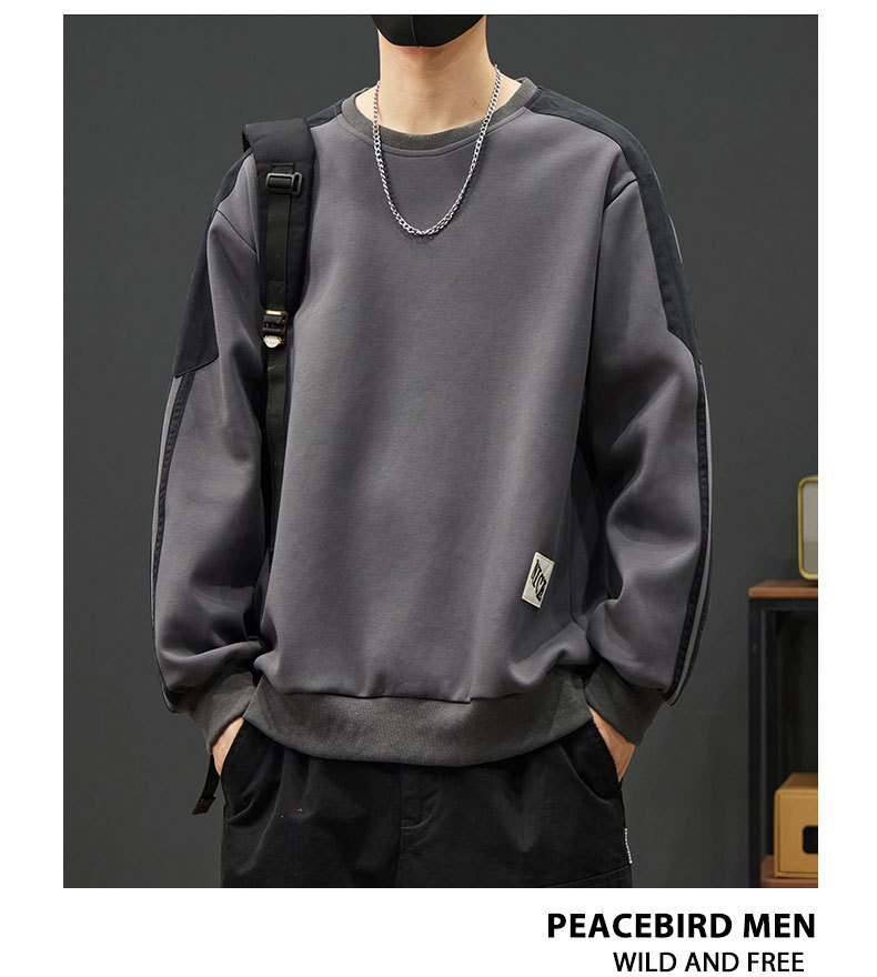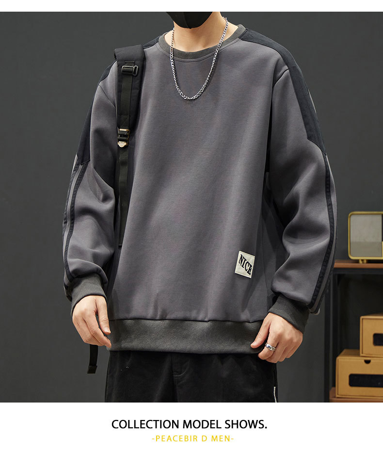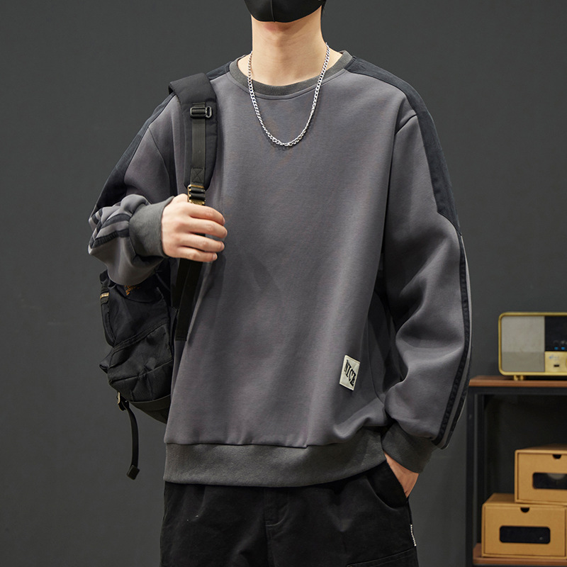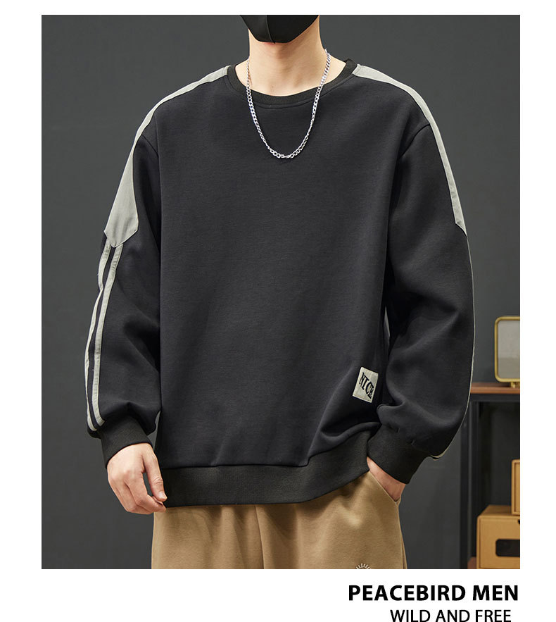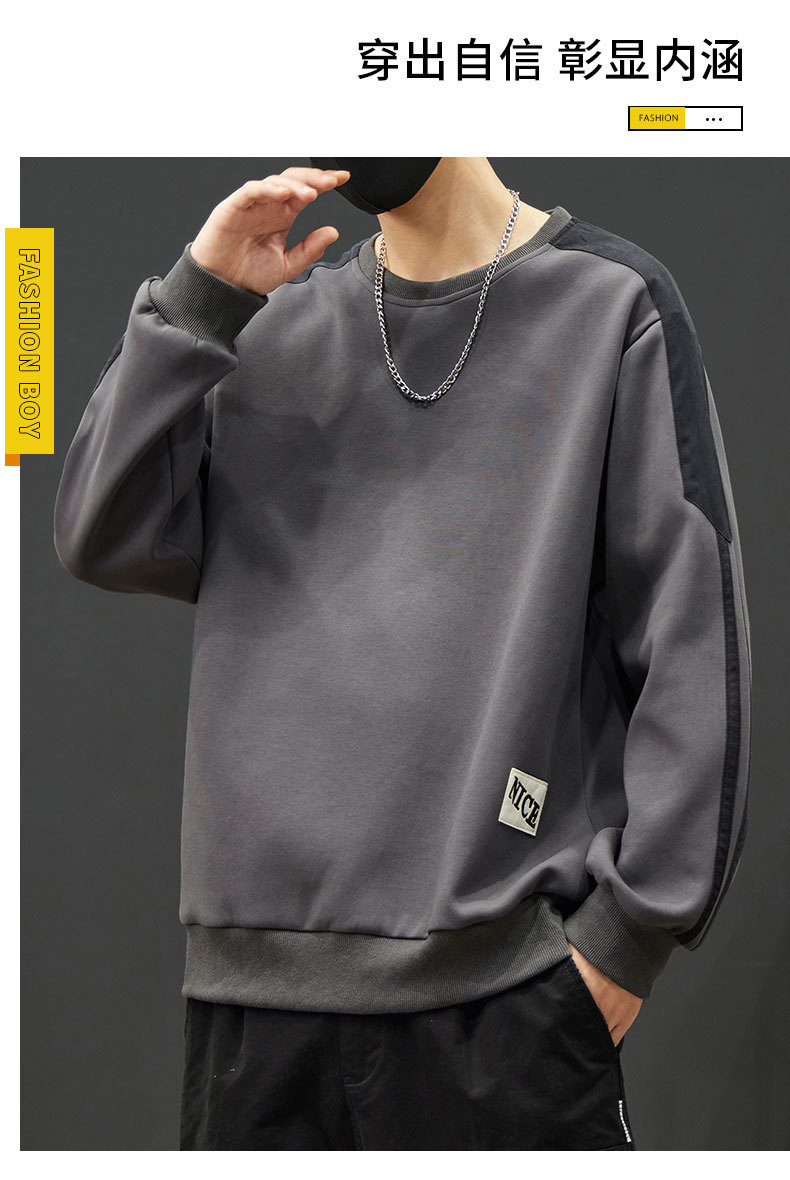 플러스 사이즈 스웨트 셔츠 남자의 가을 지방 플러스 사이즈 슬림 느슨한 최고 지방 남자의 검은 둥근 목 긴 소매 운동복스토어 가기