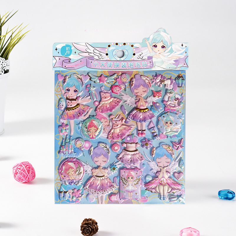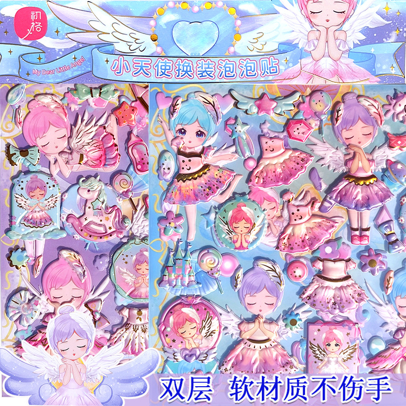 Chuge 대형 더블 레이어 스티커 어린이 공주 원피스 업 폼 스티커 만화 소녀 핫 스탬핑 의류 스티커스토어 가기