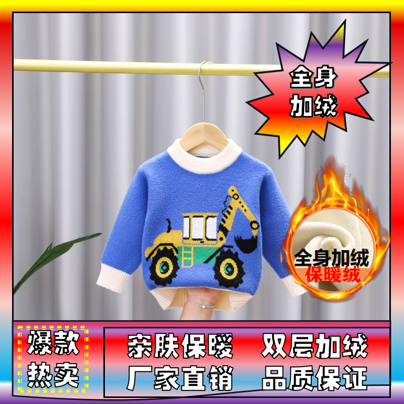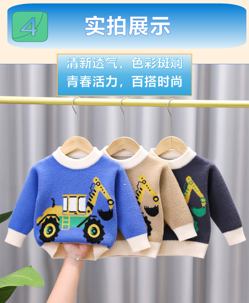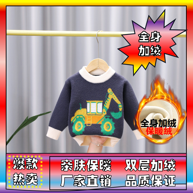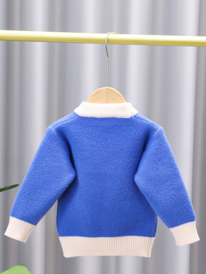 유아 남아용 한국산 플리스 스웨터 2024 아동복 가을 겨울 풀오버 라운드넥 아동 스웨터 제조업체 도매 유아용스토어 가기