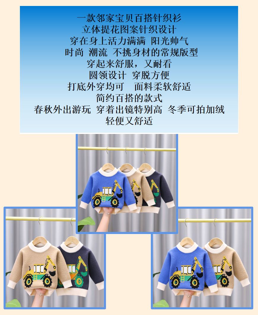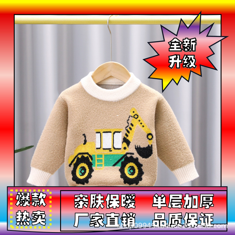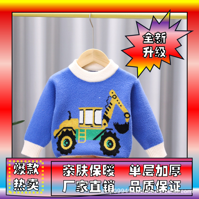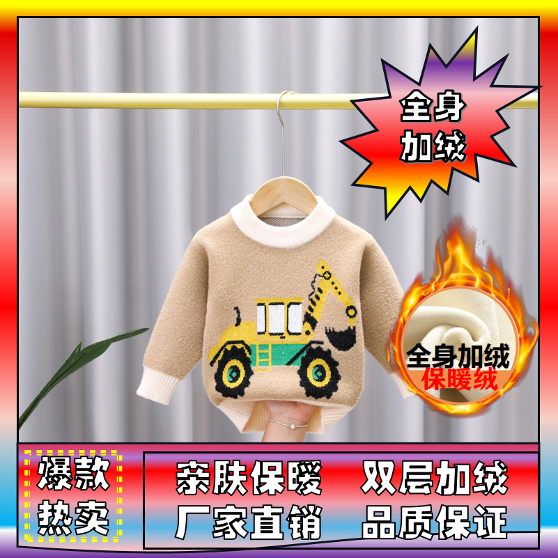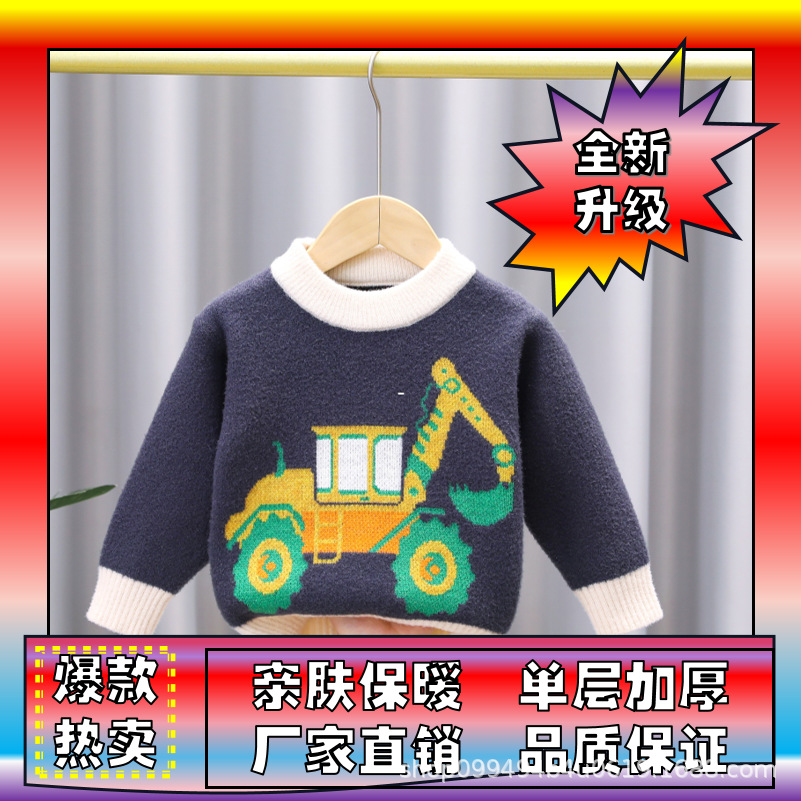 유아 남아용 한국산 플리스 스웨터 2024 아동복 가을 겨울 풀오버 라운드넥 아동 스웨터 제조업체 도매 유아용스토어 가기
