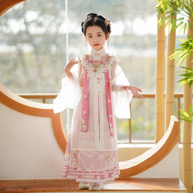 어린이 한푸 소녀 명나라 만든 구름 어깨 한푸 골동품 세트 슈퍼 요정 긴 원피스 요정 2024 새로운스토어 가기