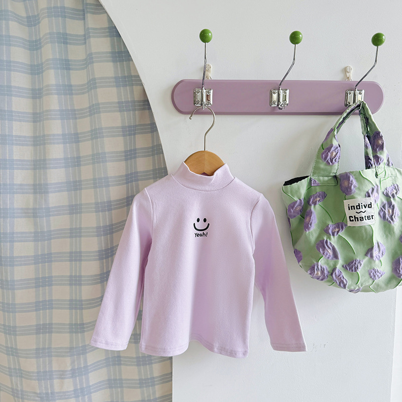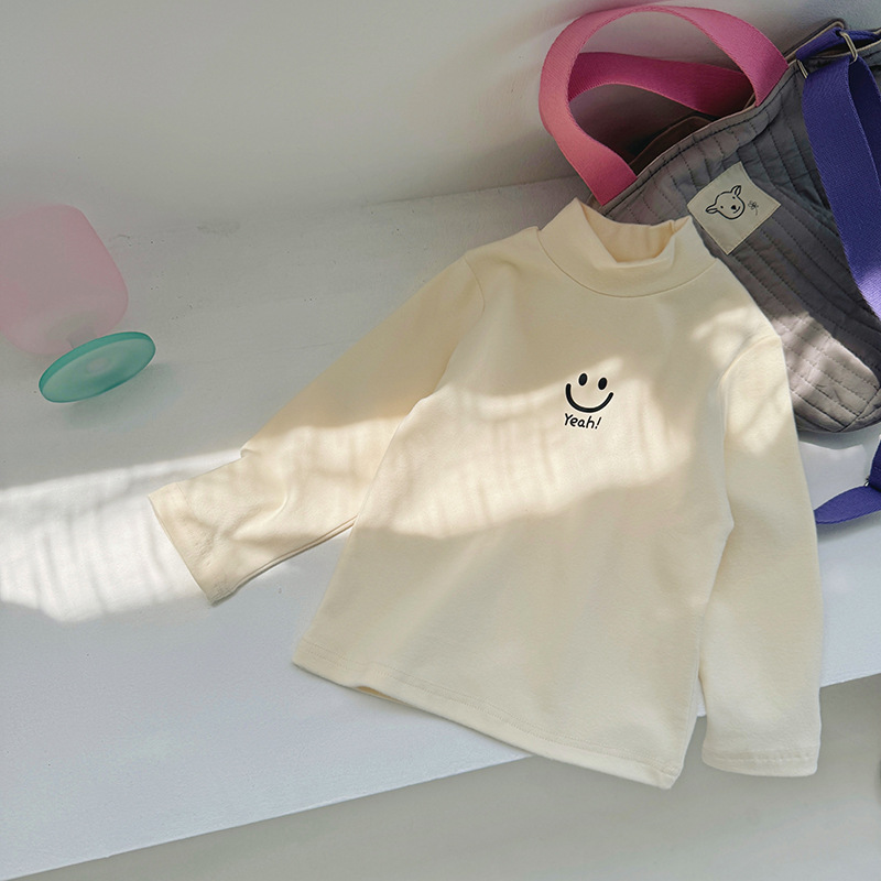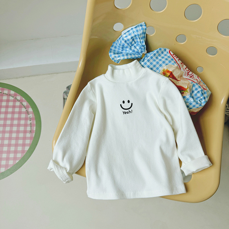 한국 아동복 올 매치 하이 칼라 따뜻한 바닥 셔츠 가을과 겨울 아동복 귀여운 중소형 어린이 긴팔 티셔츠 상단 국경스토어 가기