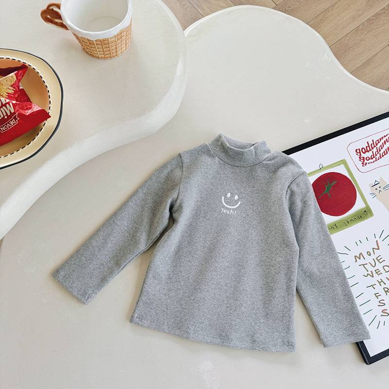 한국 아동복 올 매치 하이 칼라 따뜻한 바닥 셔츠 가을과 겨울 아동복 귀여운 중소형 어린이 긴팔 티셔츠 상단 국경