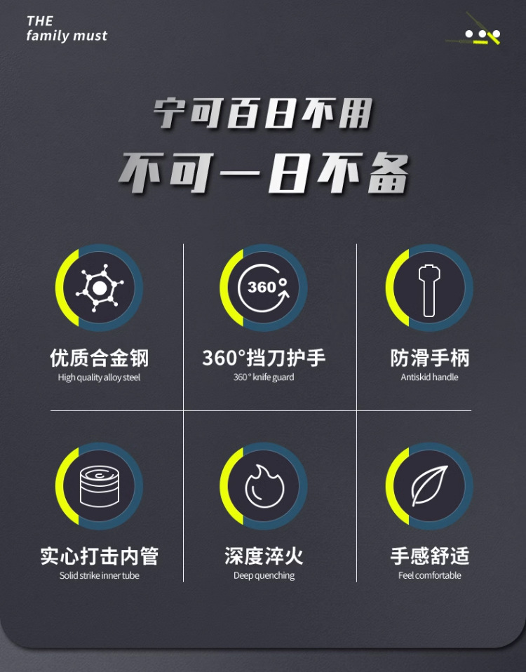 • 21inch 솔리드 트레킹 폴 티타늄 블랙 깨진 창 모델 + 핸드 로프 + 스틱 커버