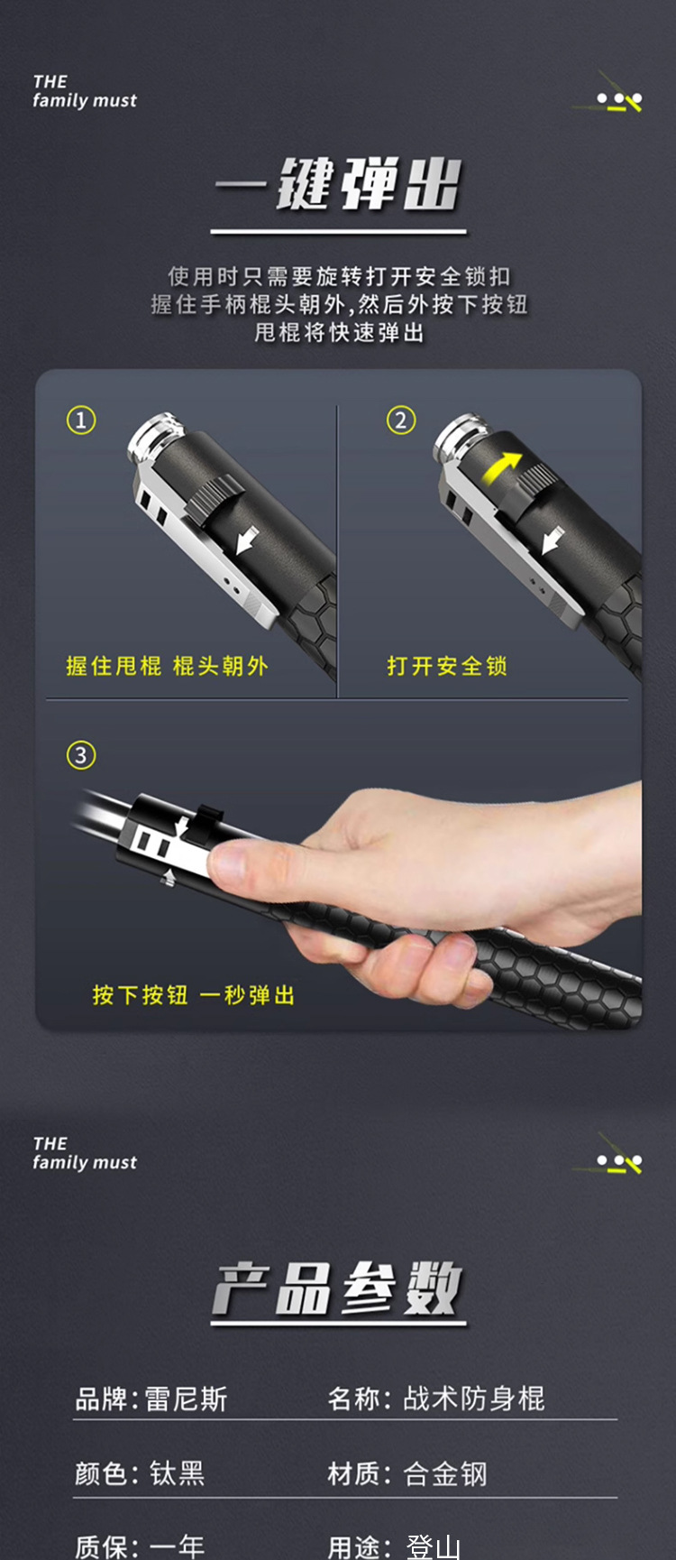 • 26inch 솔리드 트레킹 폴 티타늄 블랙 깨진 창 모델 + 핸드 로프 + 스틱 커버