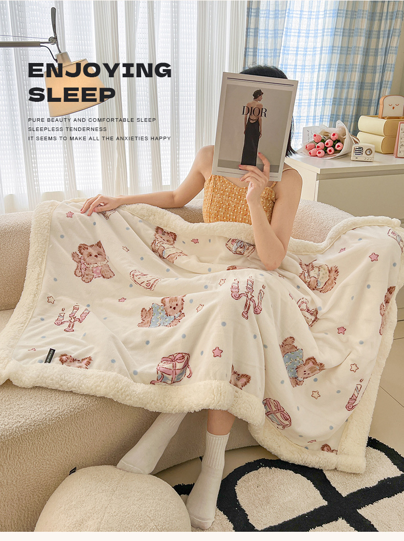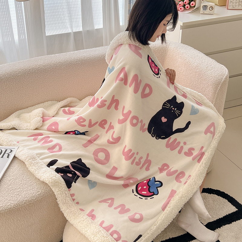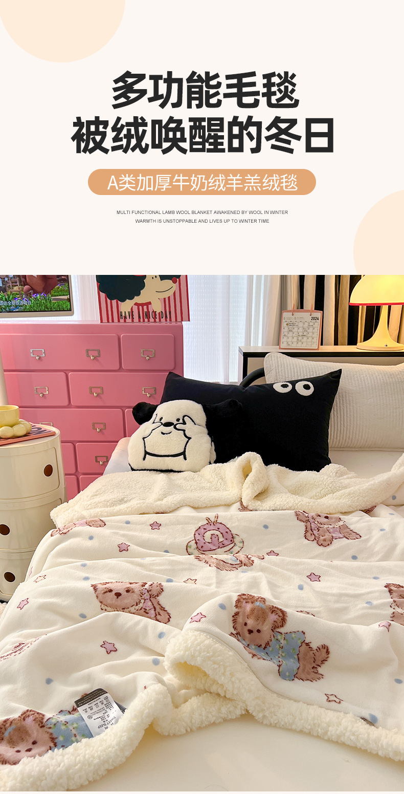 클래스 모성 및 유아 학년 양고기 양털 담요 스타일 다기능 퀼트 커버 담요 학생 만화 우유 양털 소파 담요