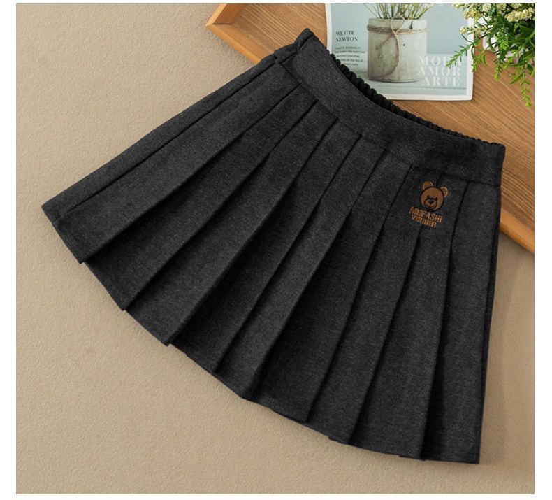 소녀 가을과 겨울 치마 2024 새로운 스타일 대형 어린이 올매치 쇼트 스커트 어린이 아기의 세련된 캐주얼 주름 스커트 트렌디스토어 가기
