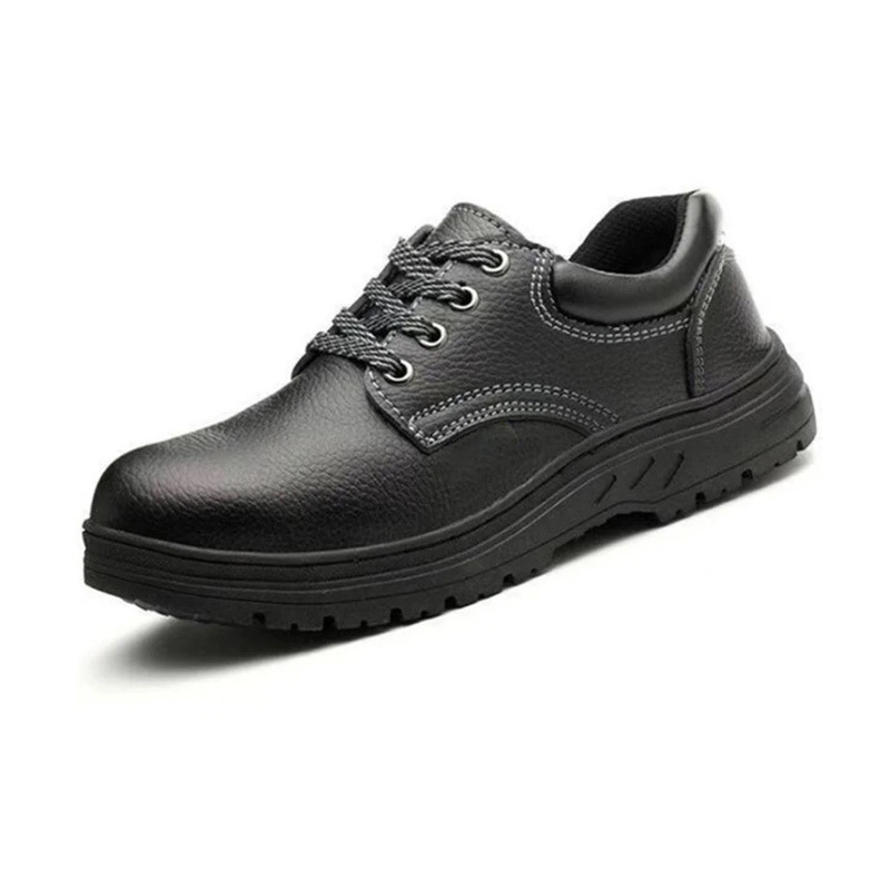 노동 보호 작업 신발 안티 스매싱 Cowhide Litchi 패턴 블랙 두꺼운 바닥 강철 Baotou 내마모성 건설 현장 보호 안전 신발